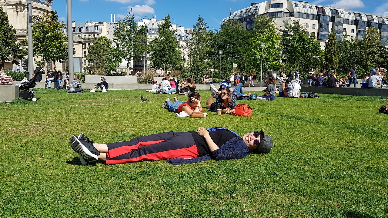 퐁네프의 다리 쪽으로 걸어가는 길에 잔디가 깔린 공원이 있었는데 누워서, 혹은 앉아서 너무나 평화롭게 저마다의 오후를 즐기고 있었다. 나도 그만 따라서 누워 보았다. 청명한 가을 하늘, 뭉게 구름, 이렇게 한가롭게 누워 본 게 언제인가 싶었다.