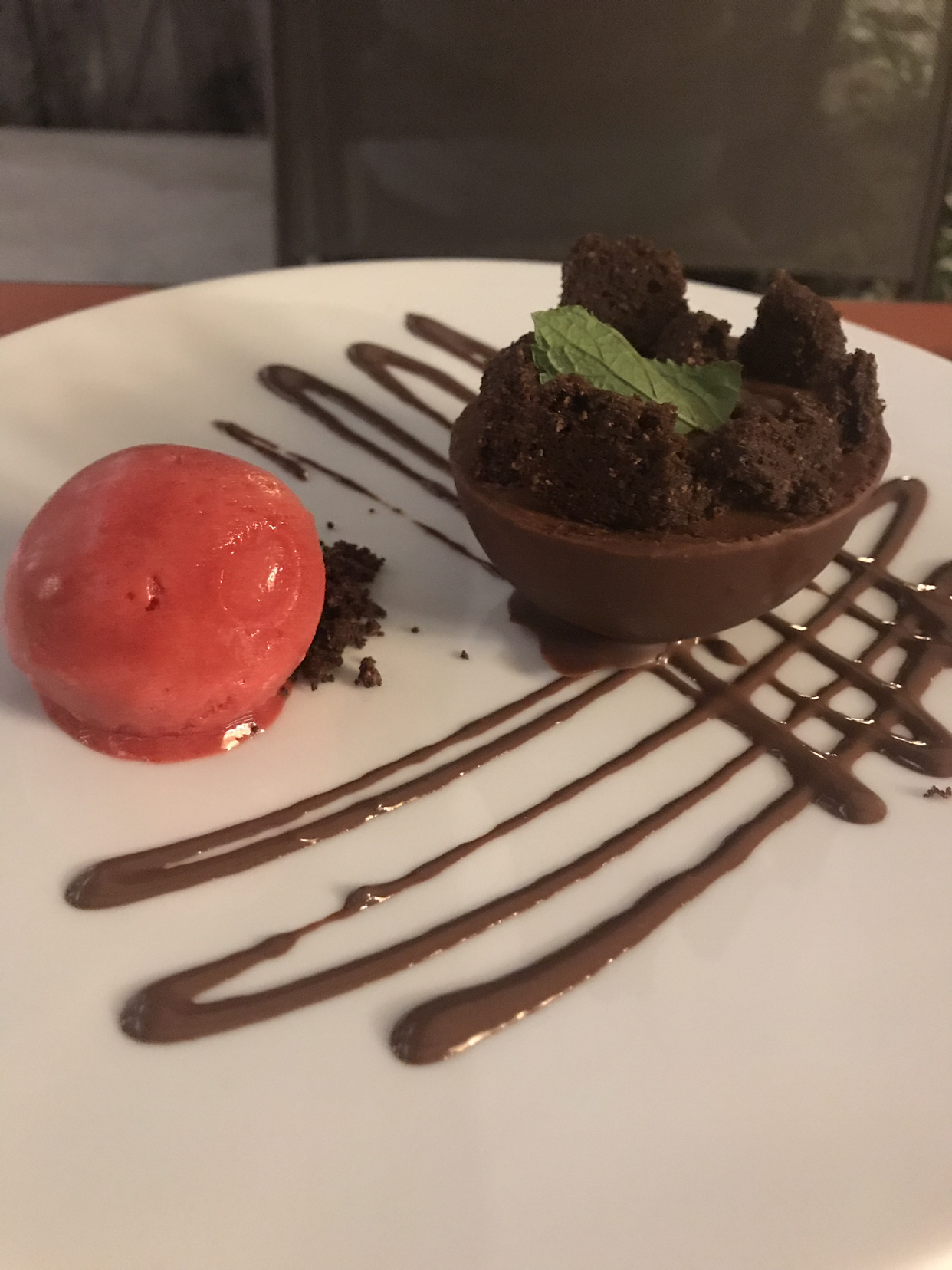 전채와 메인, 디저트가 세트로 구성된 식사가 39유로. 맛은 더 말 할 것도 없이 좋았다. 전채로 나온 달팽이도 좋았고 호박 리조또를 곁들인 도미 요리는 내가 먹어 본 ‘one of the best’ 였다. 민트를 섞은 쵸콜릿 무스와 샤베트도 놓칠 수 없는 맛!
