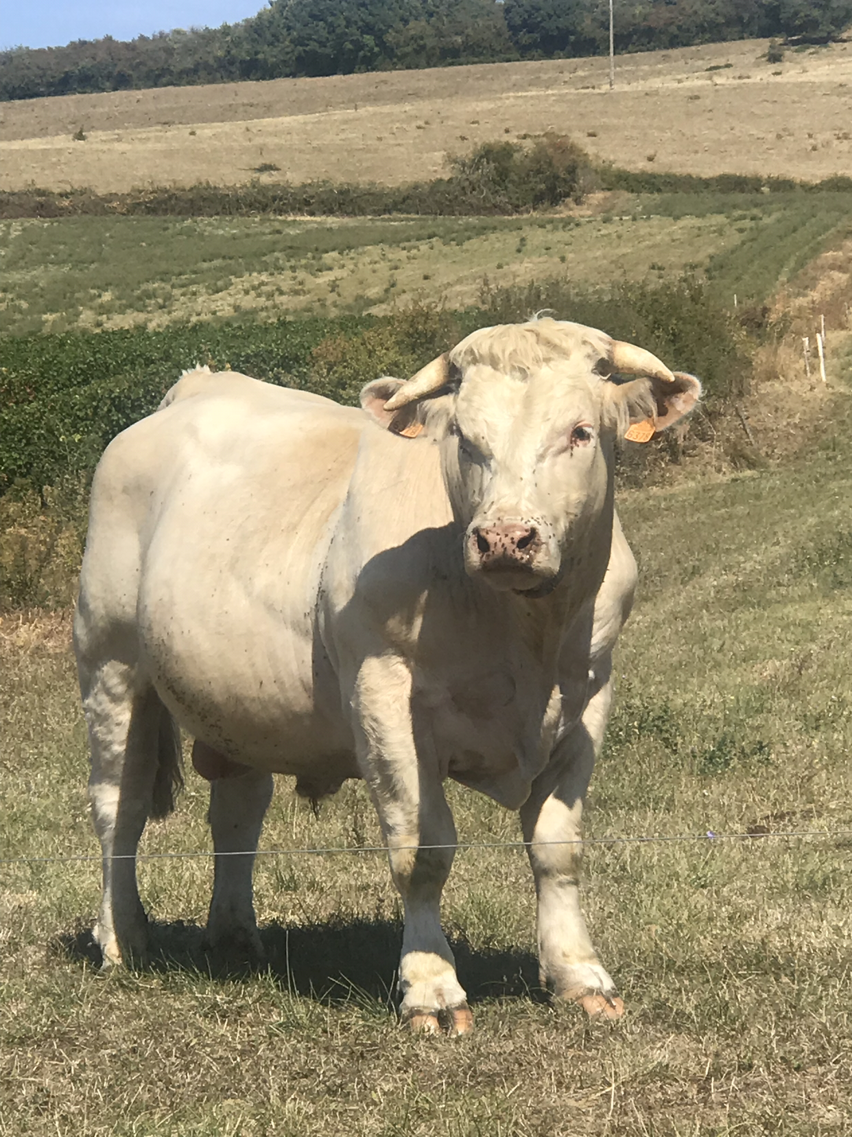 프랑스나 스위스를 다니며 질리도록 소를 보았다. 프랑스 소는 흰 색에 가깝다. 길을 지나다 표정이 좋아 한 컷.