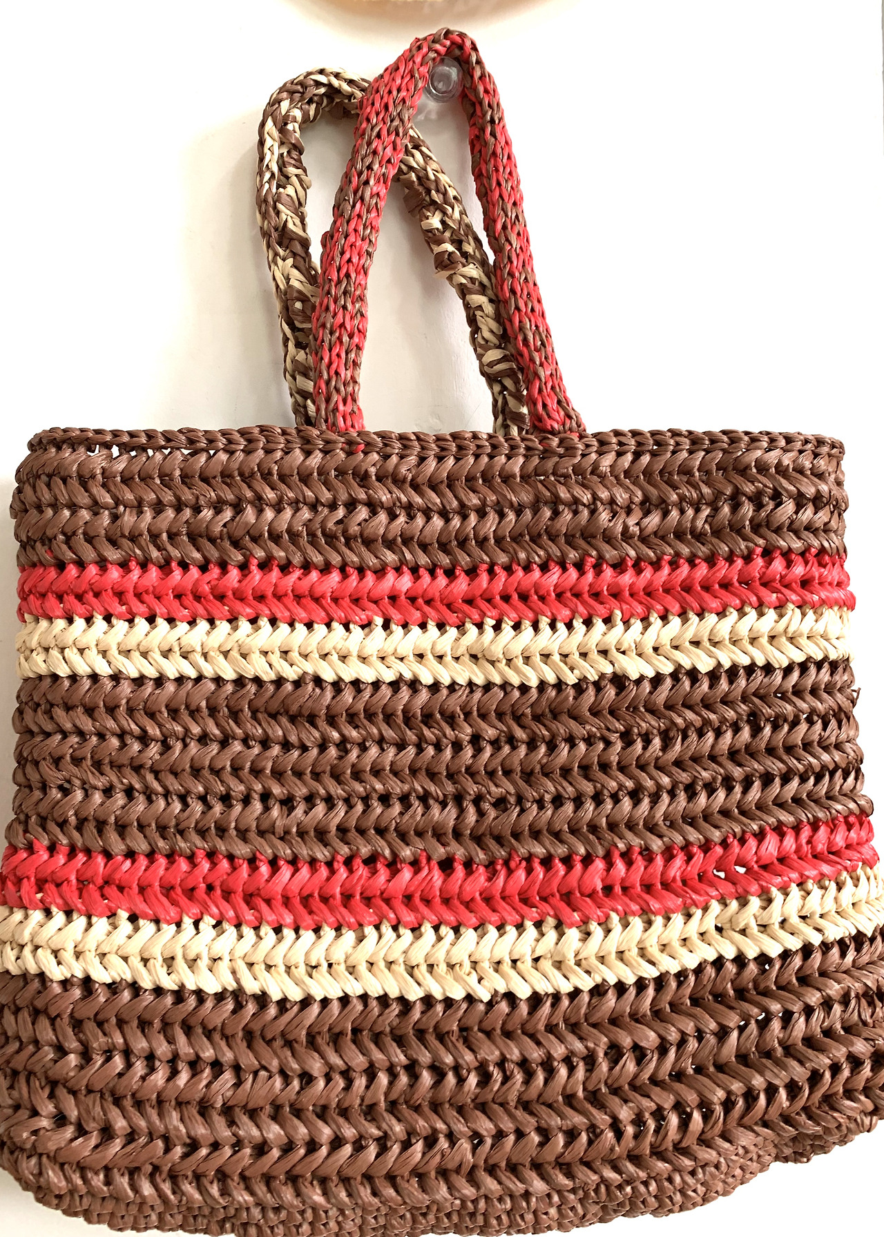 먼저, 여름 가방. 여름이 시작될 때쯤 종이 실로 가방을 하나 떠야겠다 생각하던 즈음 일본의 수출규제 조치가 발표됐다 (이런 거창한 이웃나라의 정책 기조가 내 일상에도 영향을 미치고 있다니...). 원래 '미도리'라는 일제 종이실로 뜨려 했지만 대체재를 찾아 알로하 실을 주문했다. 요즘 유행하는 헤링본 스티치로 시작을 했는데 도통 진도가 나가지 않았으나 휴가가 시작되자 드디어 완성!