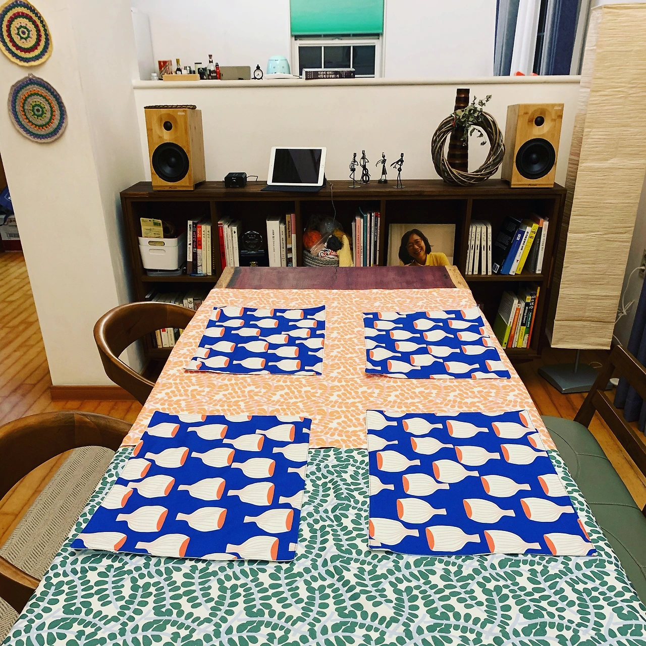 식탁보와 테이블 매트는 소모품이다. 처음엔 예쁜 천으로 정성 들여 만든 테이블보, 테이블 매트에 김치 국물이 묻으니 너무 안타까워 탄식이 나기도 했다. 하지만 이내 마음을 고쳐 먹었다. 밥을 기분 좋게 먹기 위해 만든 테이블 매트를 '모시며' 음식이 떨어질까 불편하게 밥을 먹는 건 말이 되지 않는다. 그다음부터는 맘 편하게 쓰고 음식물이 바로바로 빨아서 사용하는 것으로 모드를 전환했다. 그러자니 테이블보가 많이 필요했다.