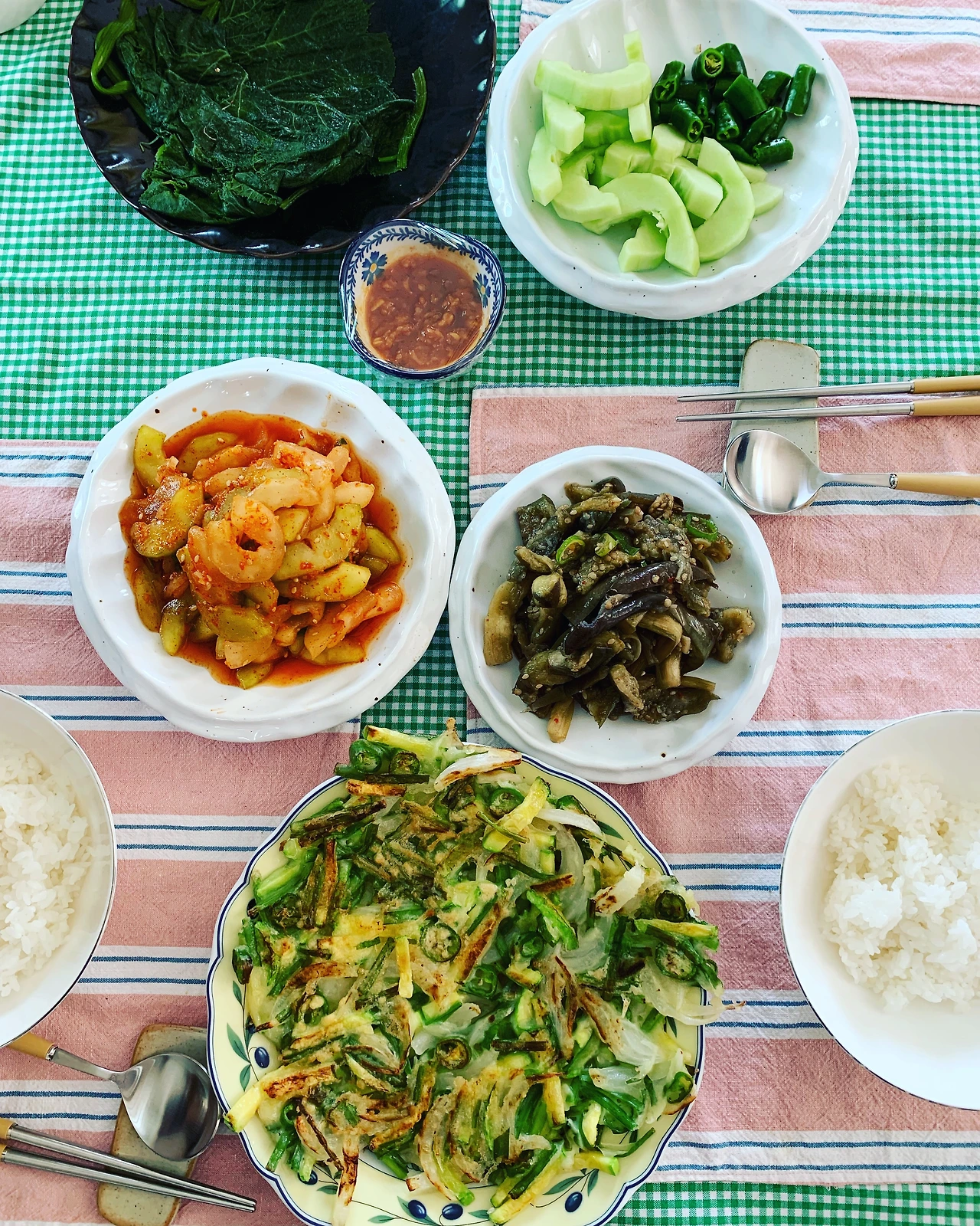 가지며 깻잎, 고추 등을 얻어왔다. 호박잎을 따주시며 ‘서울 사람들은 이런 거 못 먹지..’ 하셨다. 억세지 않은 어린잎들만 골라 주셨다.