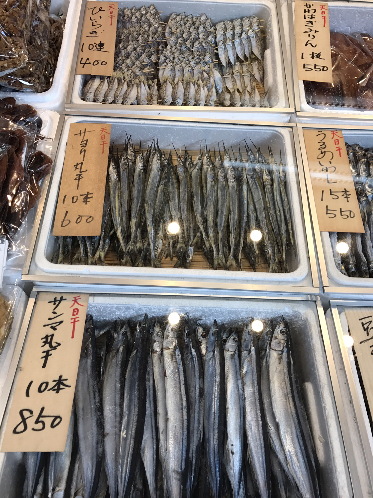 아타미는 말린 생선이 유명한 곳이다. 생선을 잘 저장하기 위해, 비린내를 없애기 위해 오래전부터 반건조하는 조리법이 발달했다고 한다. 작은 멸치나 벚꽃새우를 밥 위에 얹어 먹는게 특징인데, 짜지 않고 담백한 맛이었다.