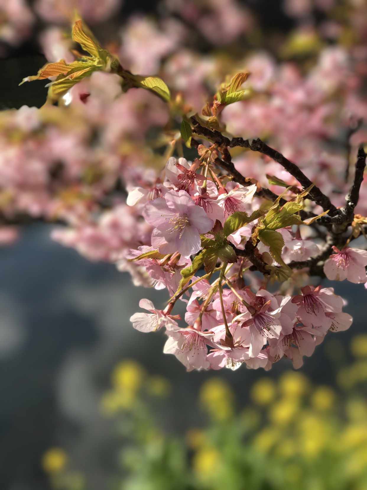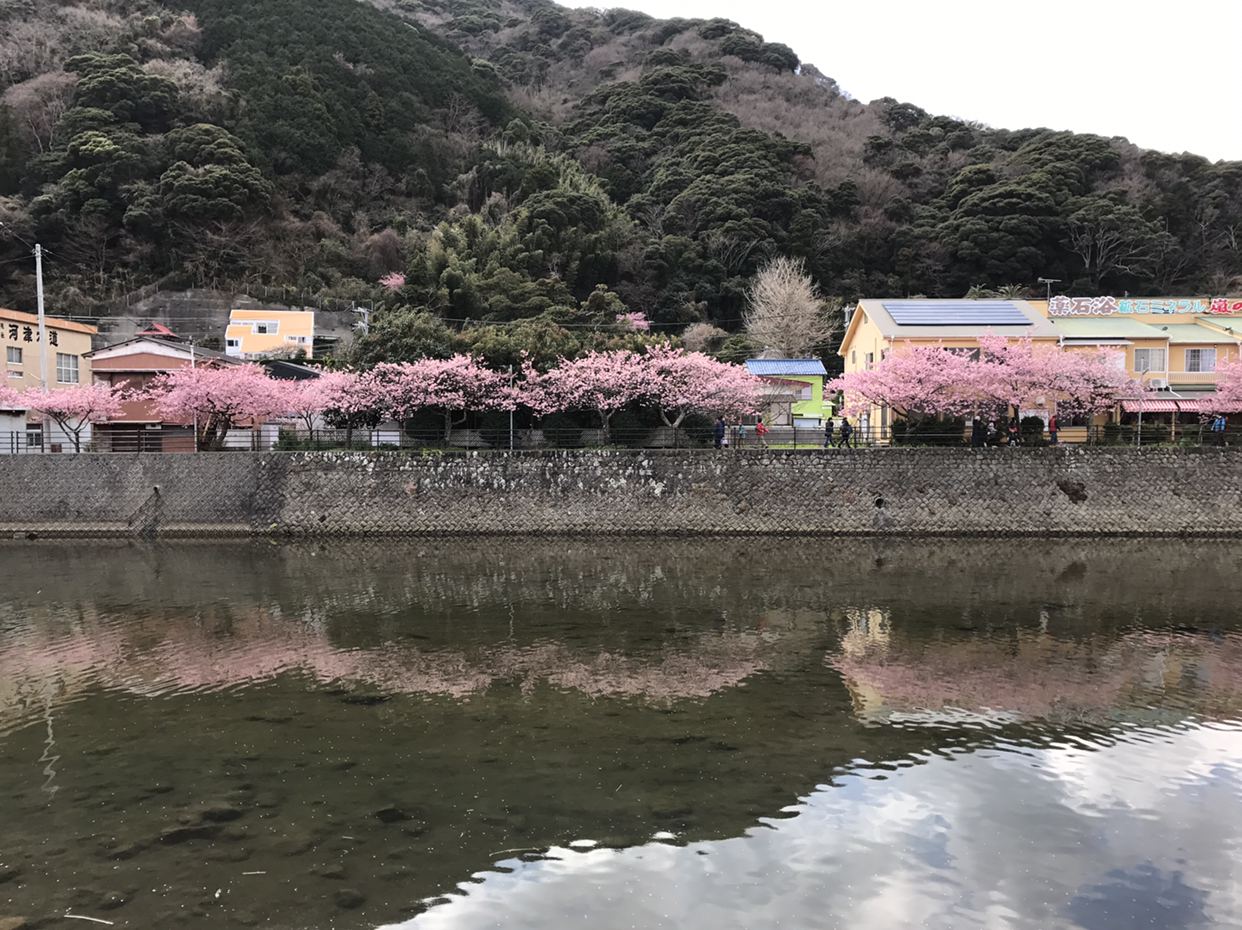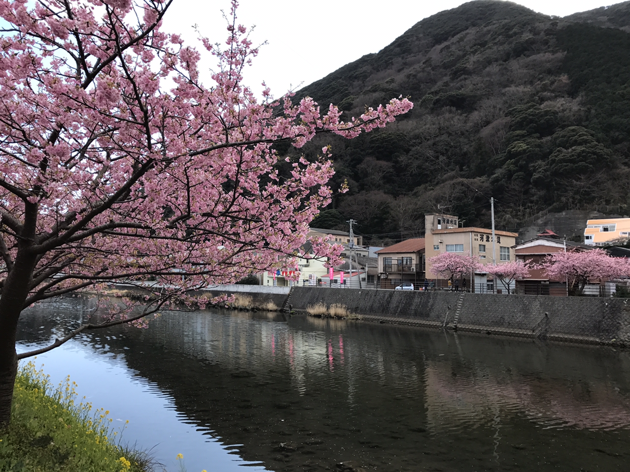 하지만, 벚꽃이 일본의 꽃이어서 일까? 가와즈 벚꽃은 정말 예뻤다. 여의도에서 내가 보아온 꽃은 잎이 하얀색이었지만 가와즈의 벚꽃은 분홍 빛이었다. 복숭아꽃 색깔이랄까. 분홍빛 생기를 가득 품고 하늘거리는 꽃을 보니 저절로 마음도 들뜨고 겨울 내 움츠렸던 마음이 풀어지는 것 같았다. 더욱이 벚꽃이 강물에 어린 풍광도 좋았다.