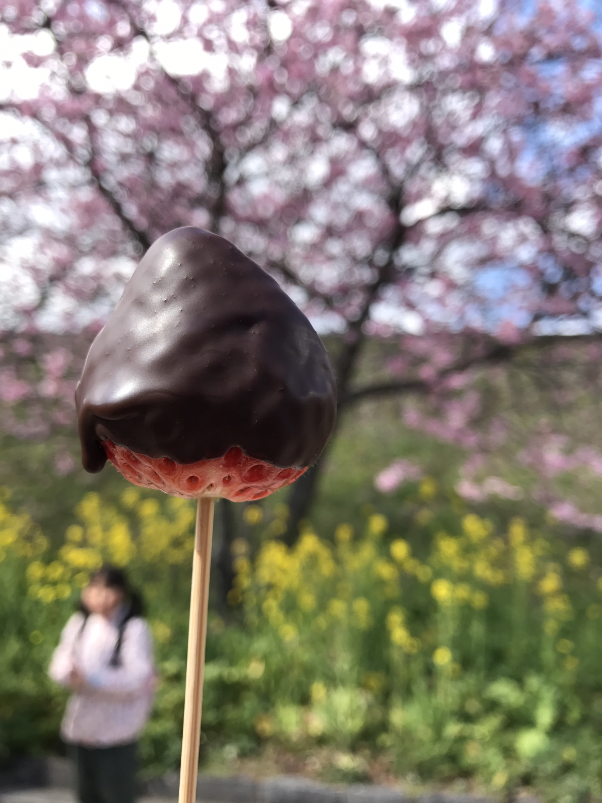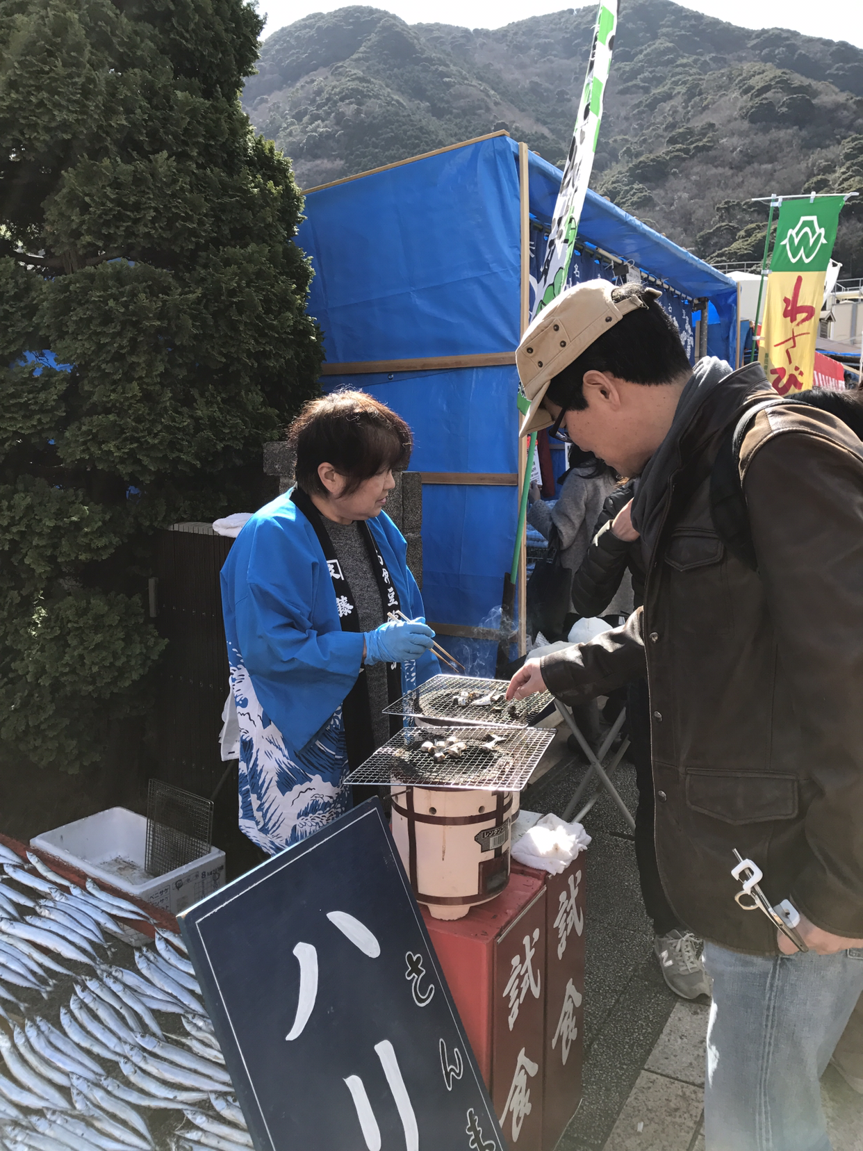 여의도 공원 정도 될까 싶은 작은 마을에 강을 따라서 벚꽃이 화사하게 피어 있었다. 둑방 길에 벚꽃이 줄지어 있고 사람들이 걸어 다니는 길을 마주하고 지역 특산물을 파는 임시 상점들이 줄을 이었다. 역시 축제엔 먹을 것이 빠지지 않는 법.