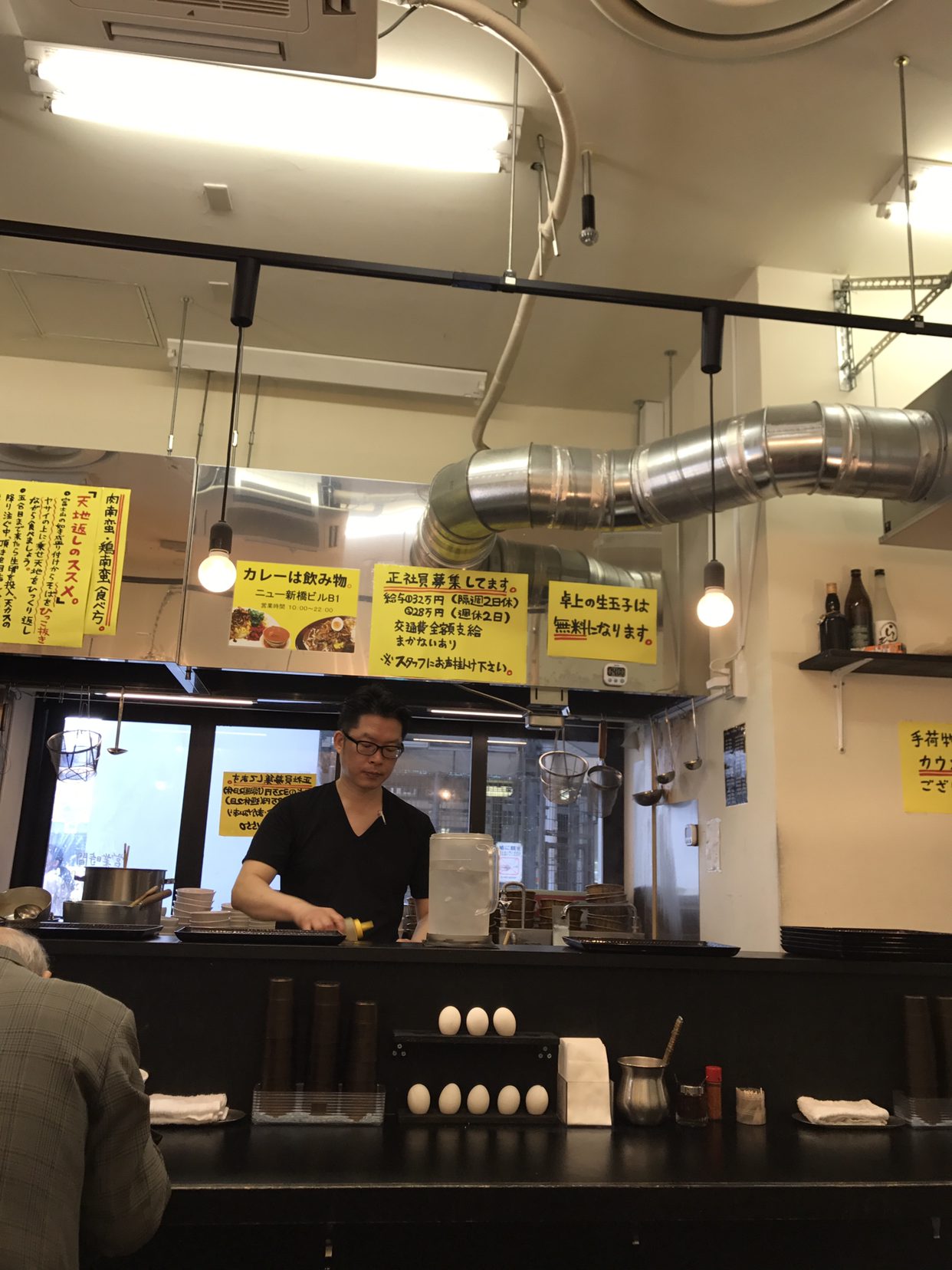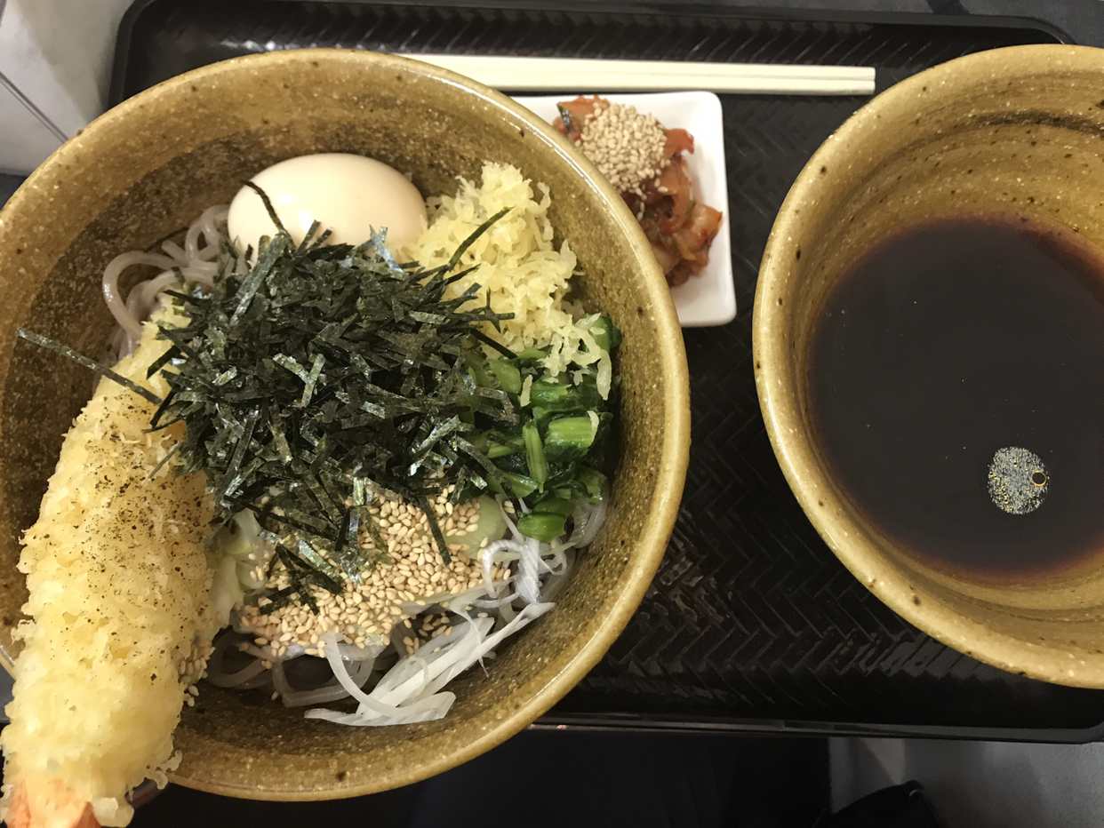 지점이 여러 곳 있는 식당이라던데 우리가 갔던 곳은 신바시역 뒤편에 있었다. 여느 일본 식당들 처럼 좁다. 카운터 식으로 놓은 바 테이블에 다섯 명 남짓 앉을 수 있고 4인 테이블 2개가 전부다. 국수 양에 따라 대(520g), 중 (370g), 소 (300g)으로 나뉘는데 가격은 모두 같다. 소를 먹어야 마땅할 테지만 여행중임을 감안해 무리하게 중을 시켰다. 열심히 먹었지만 남겼다. 소바는 일반적인 소바 국수에 비해 질긴 편이었다. 탱글한 국수를 기름과 깨소금 범벅인 간장소스에 찍어 먹는 맛이 독특했다. 우리가 방문했을 때는 토요일이라서 그런지 한가한 편이었다. 평일 점심에는 빌딩 밖으로 긴 줄이 서는 곳이라고 했다.