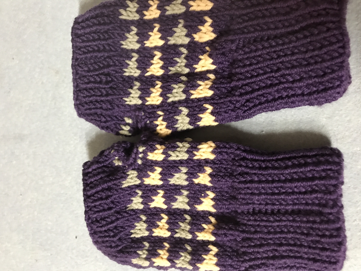 보라색과 노란색을 섞어 뜬 핸드워머. 센터에서 함께 일하는 분께 선물.