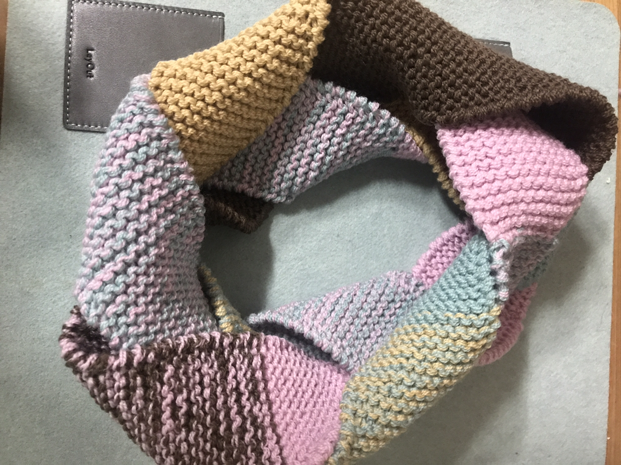 이건 나의 야심작 넥워머. 세 갈래를 떠서 머리 땋듯이 땋았다. 보기 보다는 실제가 더 예쁘다. 데헷!