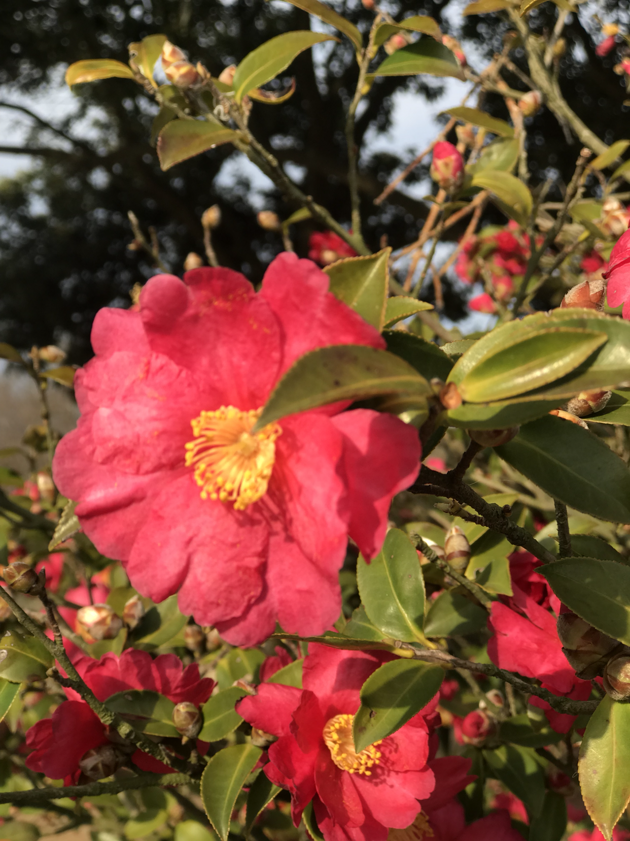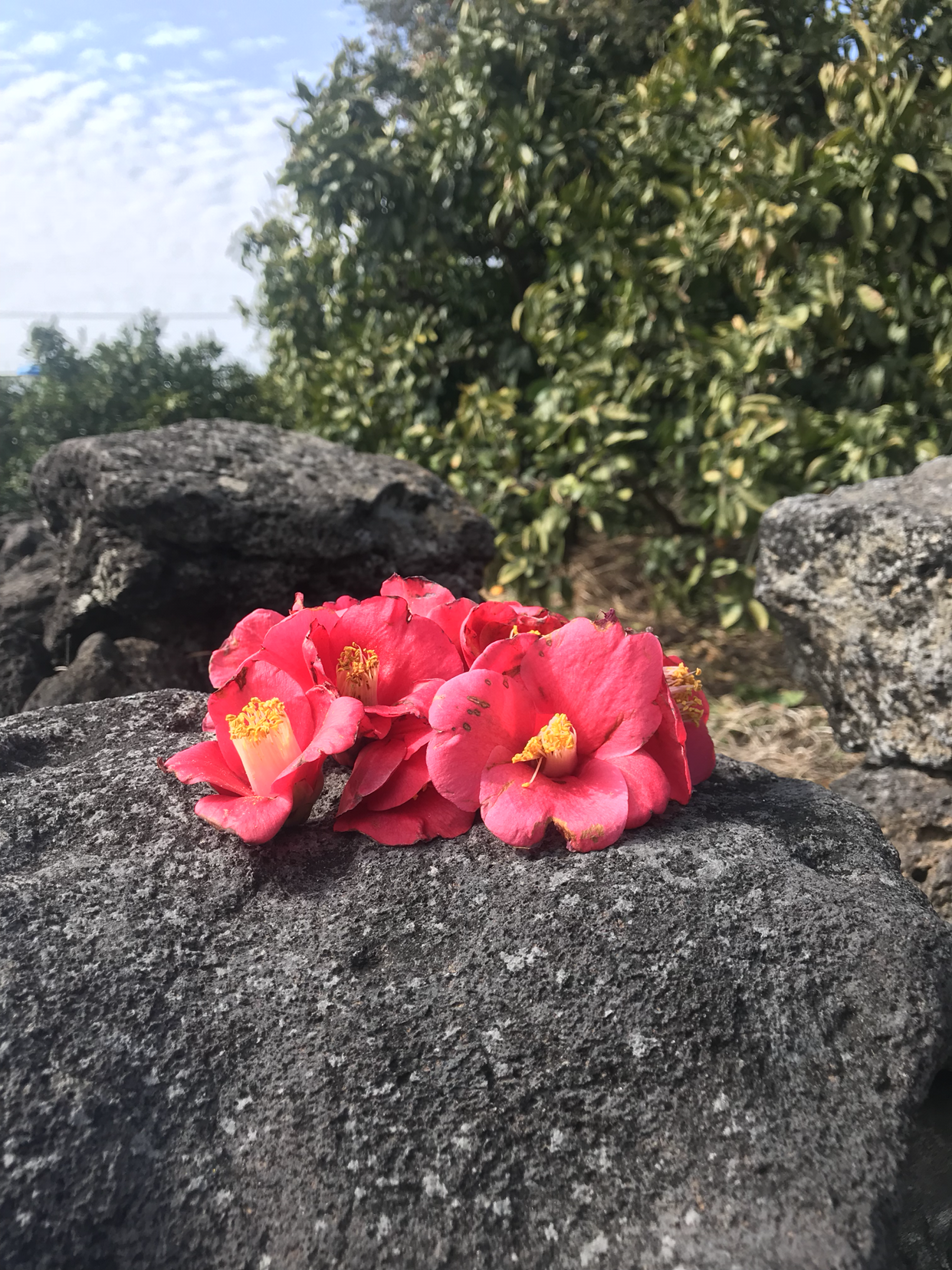 위미 동백나무 군락에선 이미 동백이 땅에 떨어져 볼 것이 없었다. 하지만 동백꽃은 제주 어느 모퉁이를 돌아도 있는 것. 오설록 티뮤지엄 앞에서 이쁜 꽃을 만났다.