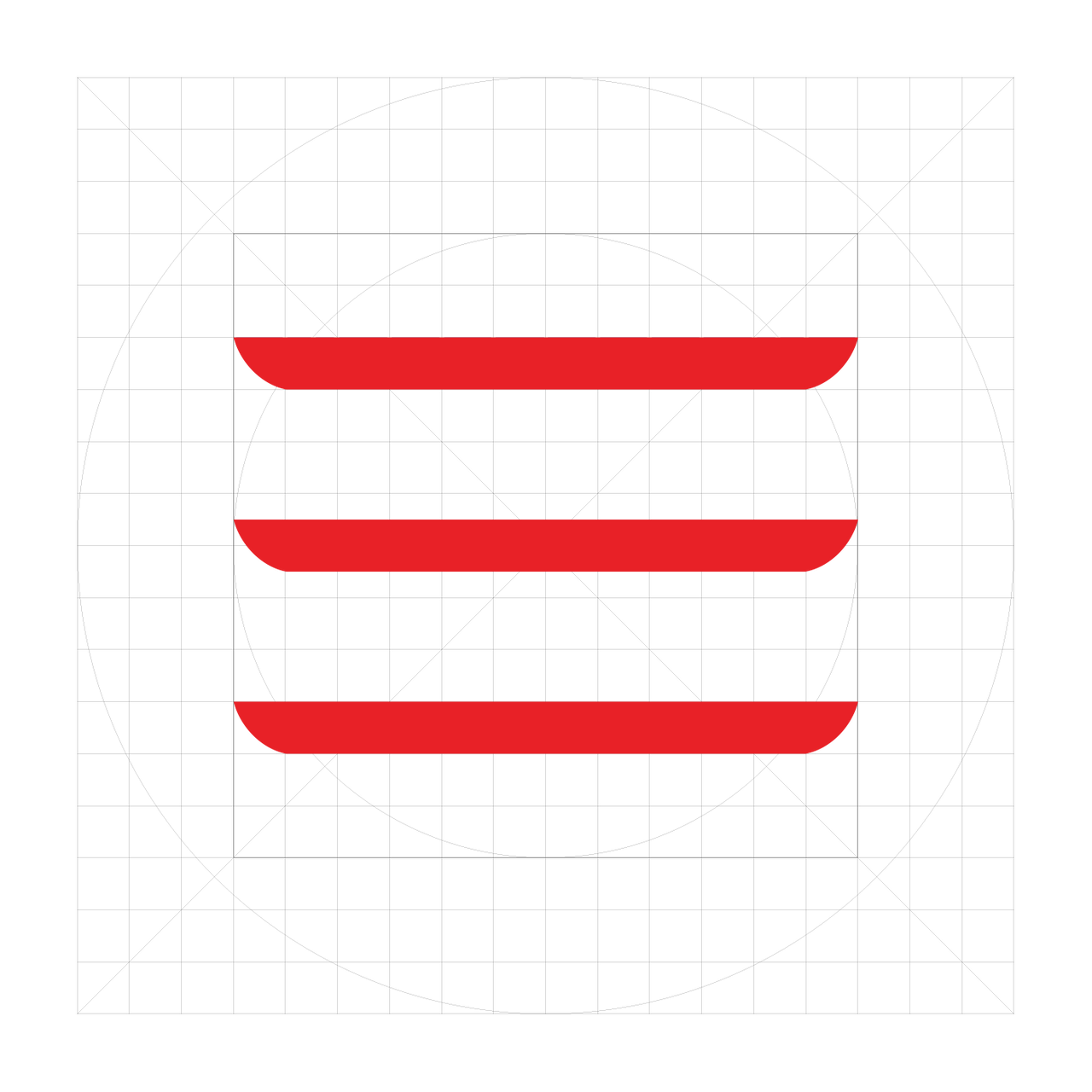 법칙이 정리가 되면 위에 열거한 4가지 법칙으로 아이콘을 제작하면 아래와 같습니다. 여기에서 중요한 점은 아이콘은 일반적으로 작은 사이즈로 사용되므로 선의 굵기가 너무 두꺼우면 시인성이 떨어지므로 최적화된 두께를 찾아야 합니다. 편의상 아이콘의 두께는 18X18 그리드의 1칸으로 정했습니다. 기준이 되는 일반적인 아이콘은 구글 머티리얼 아이콘으로 비교해 보면 아래와 같습니다.