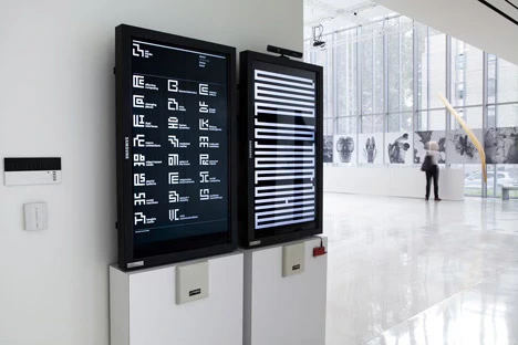 벽면 디스플레이, 엘리베이터 샤프트, 정보 게시판 등에 새로운 아이콘과 그래픽 요소가 반영되었으며, 기존 7x7 그리드를 활용해 직관적인 길 찾기(Way-finding) 아이콘 시스템이 개발되었습니다. 이러한 디자인 요소는 연구소 내부에서 정보 전달을 더욱 명확하고 효율적으로 할 수 있도록 도와주는 역할을 합니다.