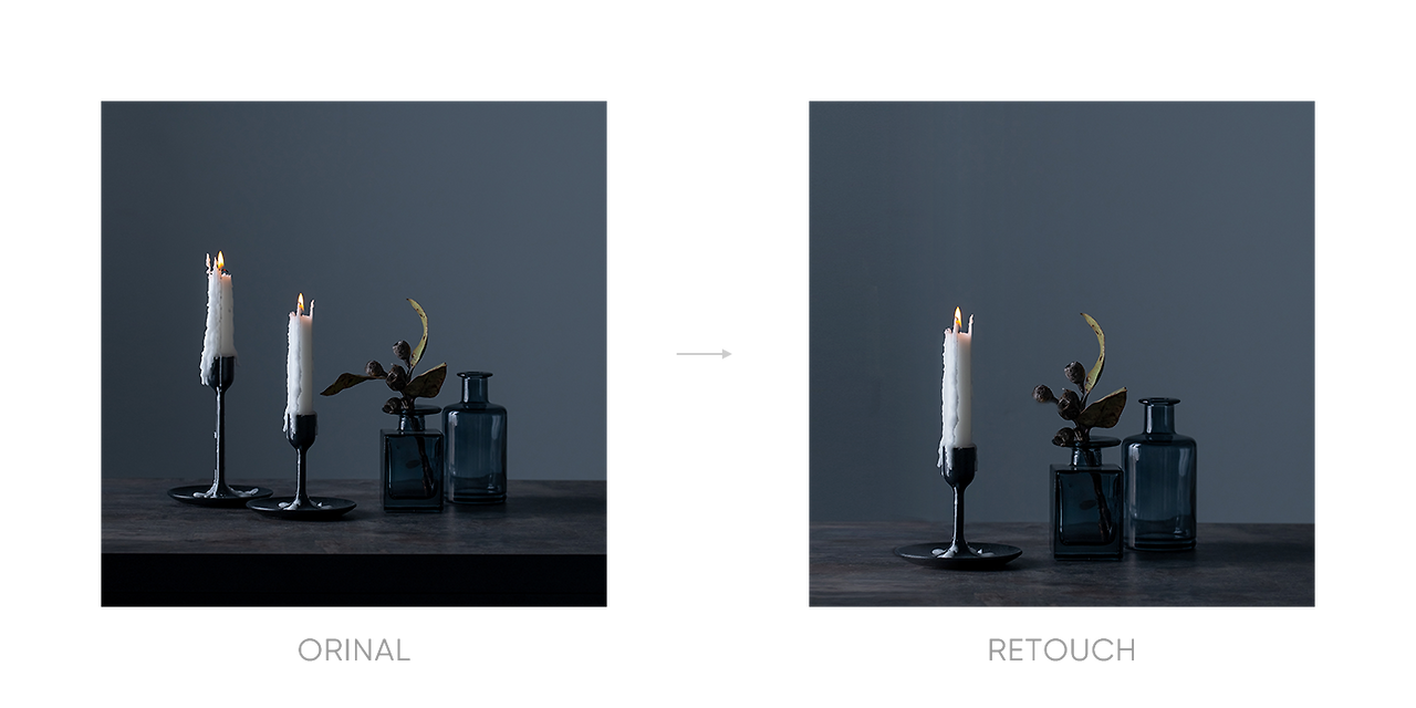 촛대 하나 제거, 화분의 돌출된 잎 제거.