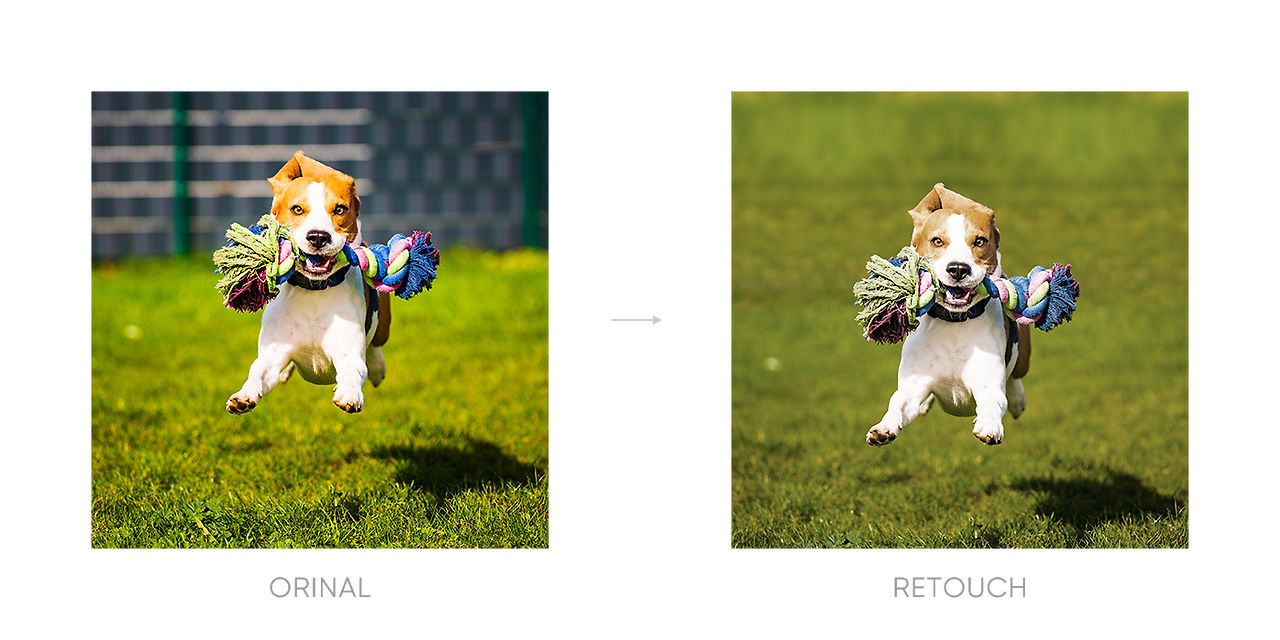 강아지 뒷 배경의 펜스를 제거하여 이미지 단순화, 채도 또한 낮추어 줌.