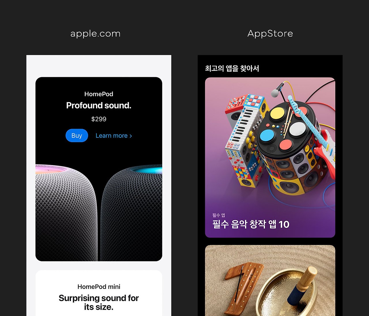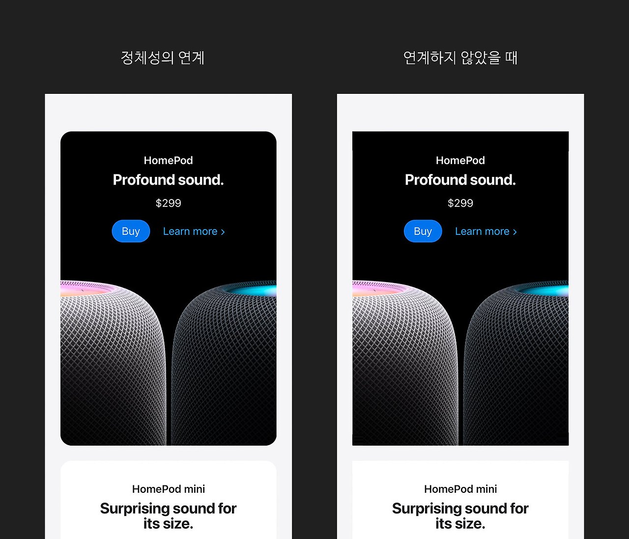여기에서 만약 라운딩 값이 없어지면 어떻게 될까요? 어느 쪽이 더 애플의 정체성이 느껴지나요? 판단은 여러분께 맡기겠습니다.