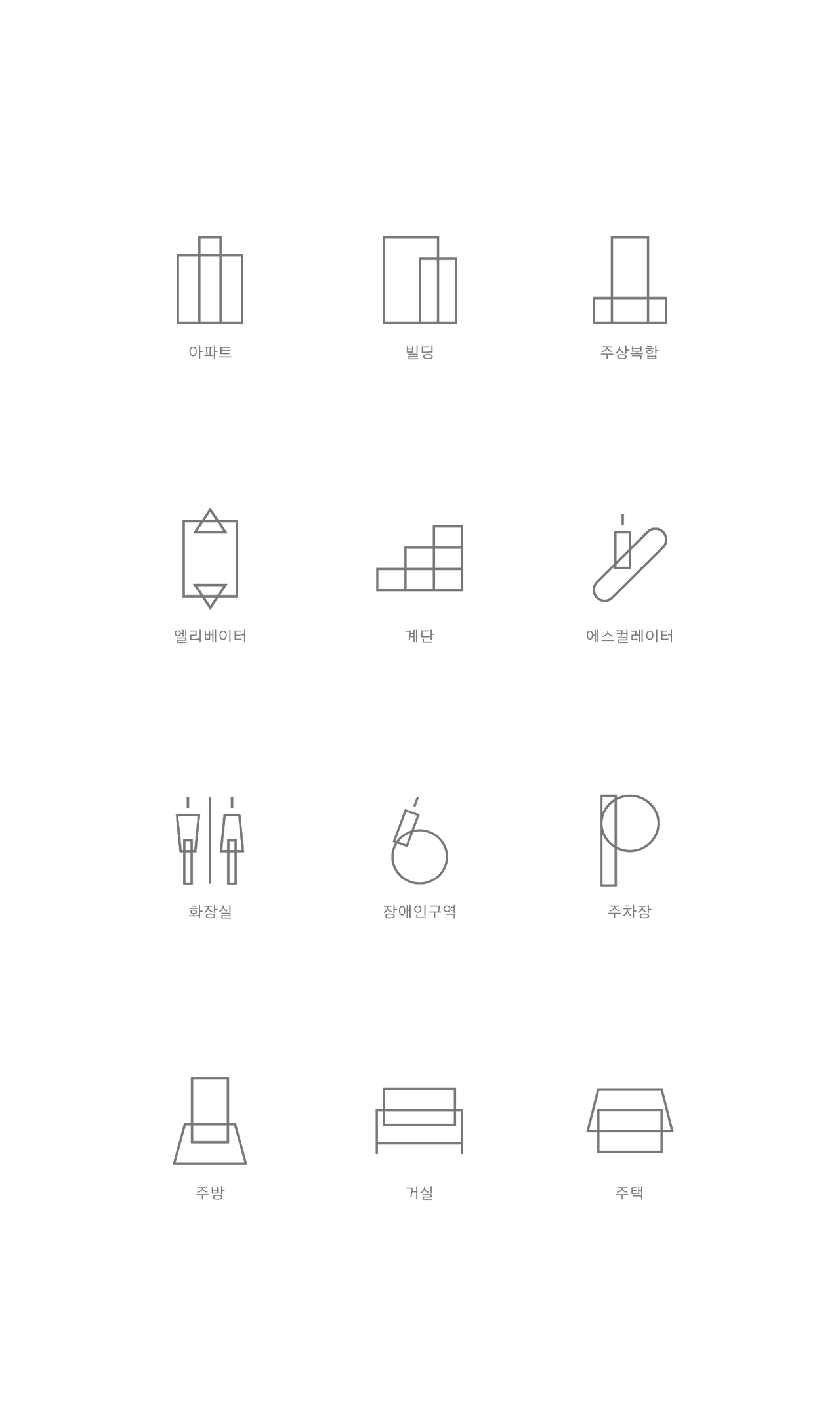 위의 케이스를 보시면 일반적으로 쓰는 건물 아이콘과는 달리 두개의 도형을 겹치는 부분을 그대로 노출하여 제작한 것을 확인 하실 수 있습니다. 복잡한 부분을 단순화하기 위해 층과 창문을 표현한 라인들도 생략하였습니다. 몇 가지 케이스를 더 보도록 하겠습니다.