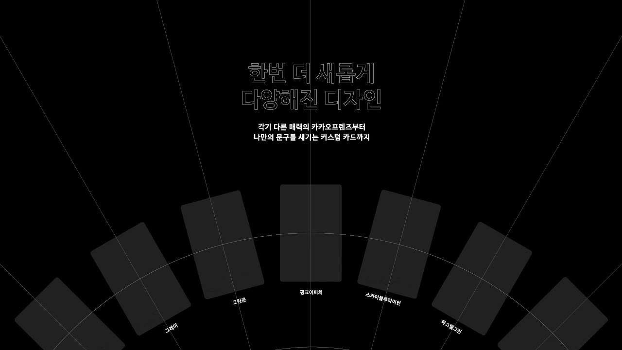 부분 방사형 레이아웃, 원 전체가 나오지 않고 일부분만 나와도 방사형 디자인을 느낄 수 있습니다. 아래 시안을 보시면 보이는 부분에서 끝나지 않고 원 형태로 돌고 있는 다른 카드들이 아래쪽에 숨어 있구나라고 자동으로 인식하게 됩니다. 또한 중심에 카피를 쓰지 못할 경우는 원 형태 위에 위치해도 무방합니다. 이 사례 또한 그리드를 먼저 보도록 하겠습니다.