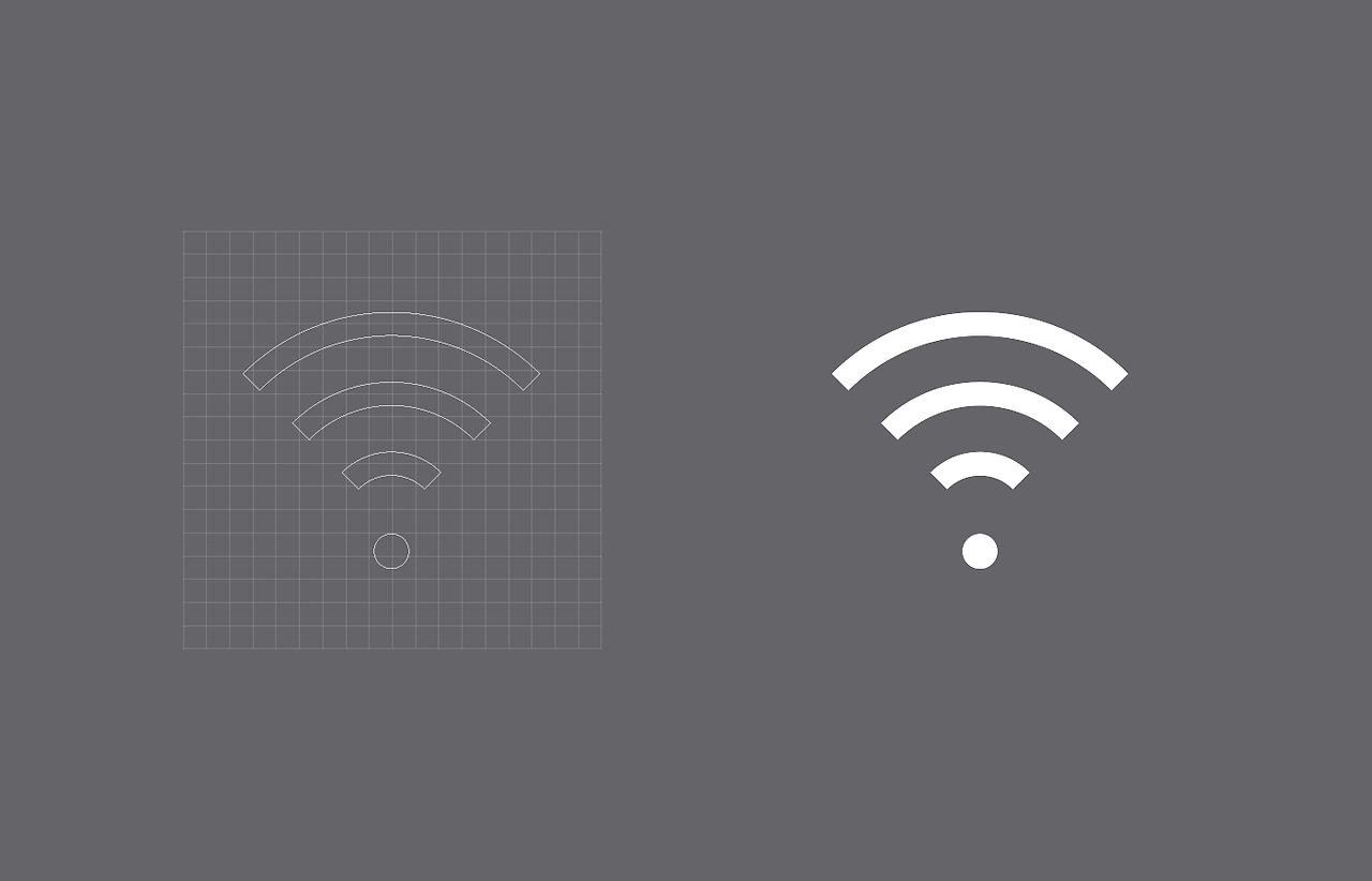샘플 4. 1/4원(90도 부채꼴)을 사용한 와이파이 아이콘입니다. 4개의 요소로 이루어져 있습니다.