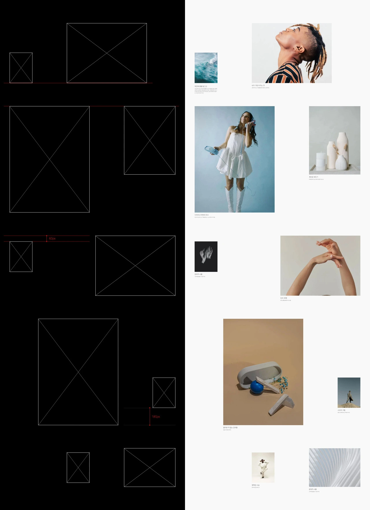 본 내용은 매거진 형태의 UI를 제작할 경우 컨텐츠 배치에 도움이 되고자 하는 목적으로 작성한 내용입니다. 평소 이런 레이아웃에 자신이 있는 디자이너분들은 가볍게 읽어보세요. 만약 어려움을 겪고 계신다면 수치화하여 좀 더 단단하게 배치하는 방법에 대해 작게나마 도움이 될 것입니다.
