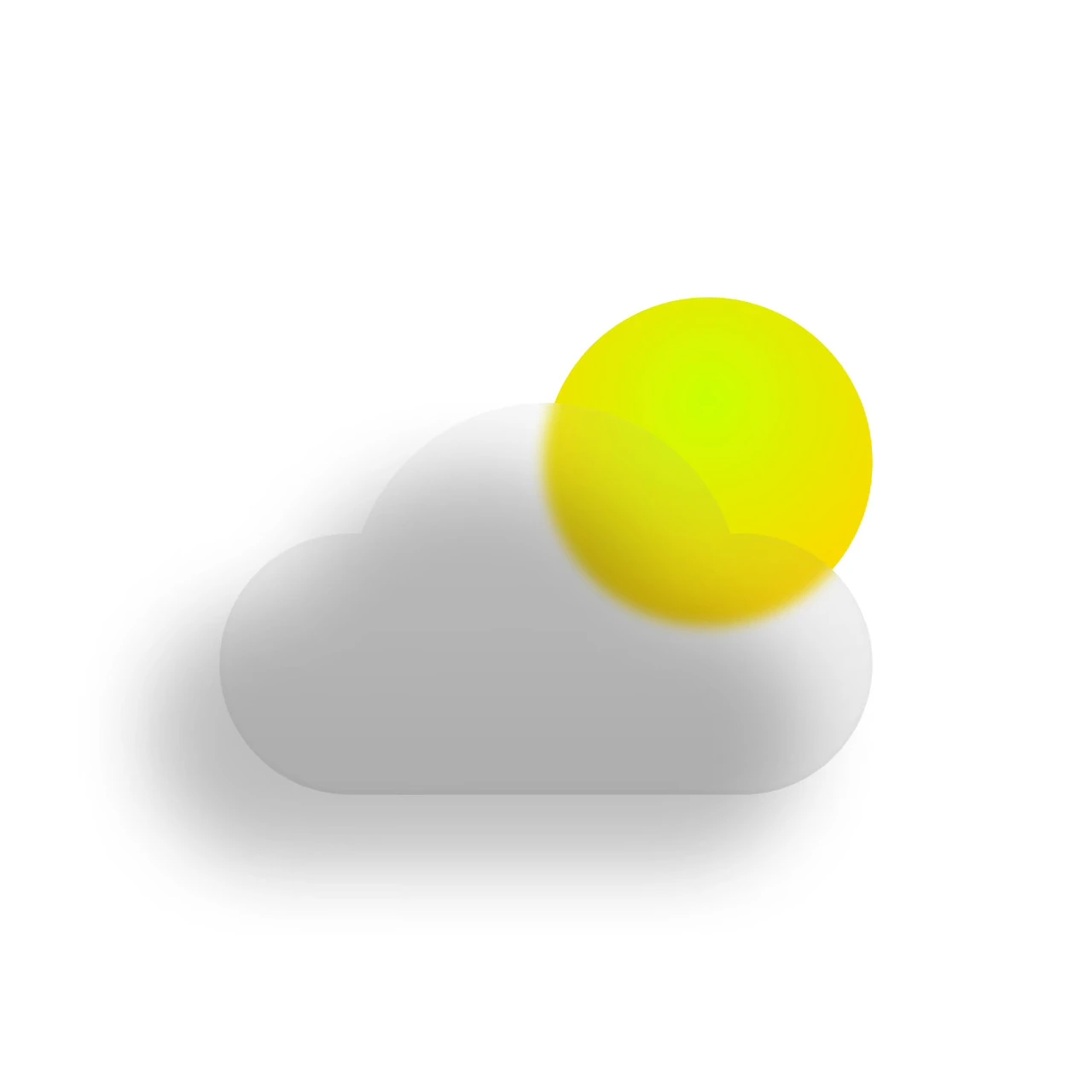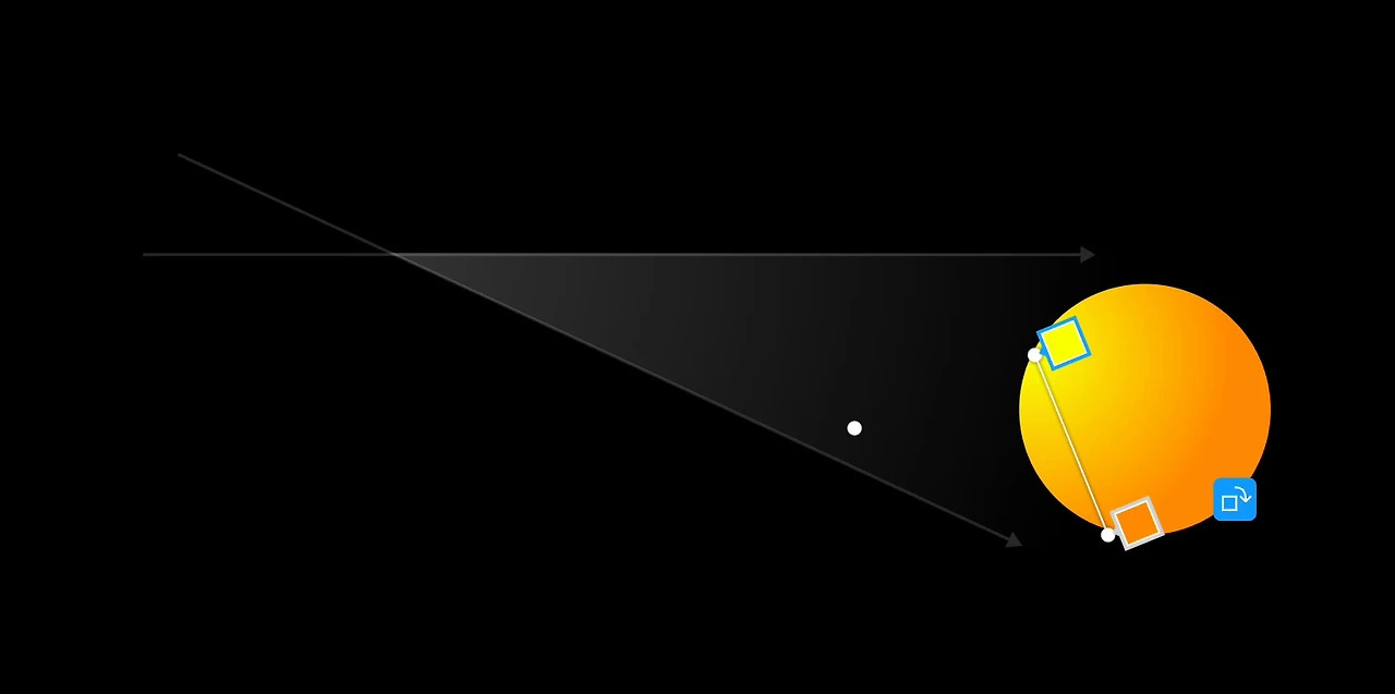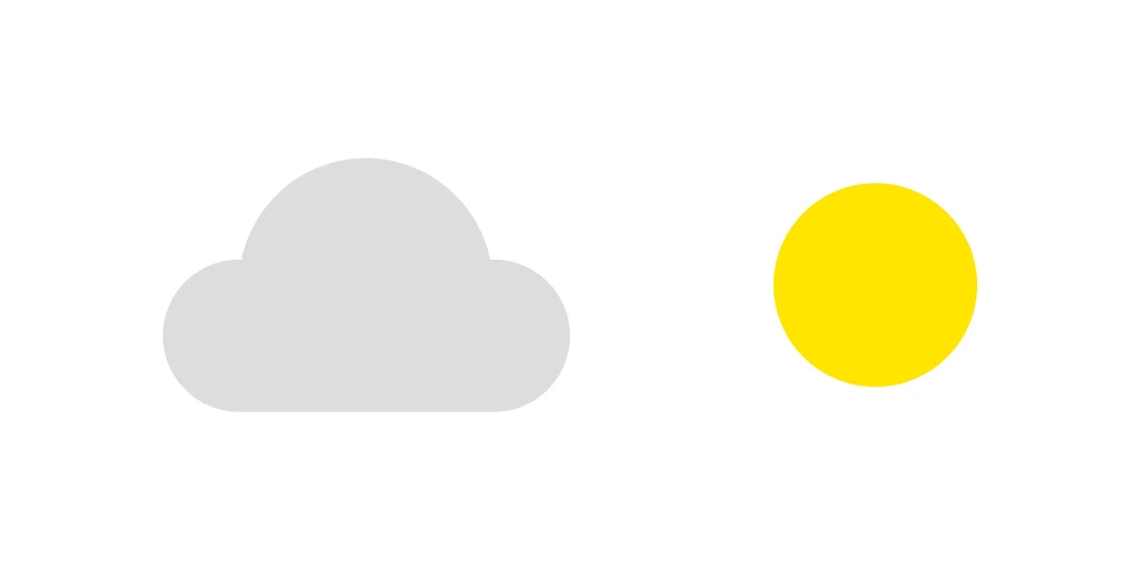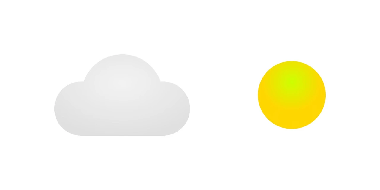 글래스모피즘의 완성도를 위해서는 약간의 리얼리티가 반영되어야 합니다. 구름과 해는 플랫 한 형태가 아닌 어느 정도 입체감을 지닌 형태입니다. 오브젝트의 앞에 다음과 같이 조명이 있다고 가정을 해보겠습니다. 오른쪽에서 보는 모습입니다.