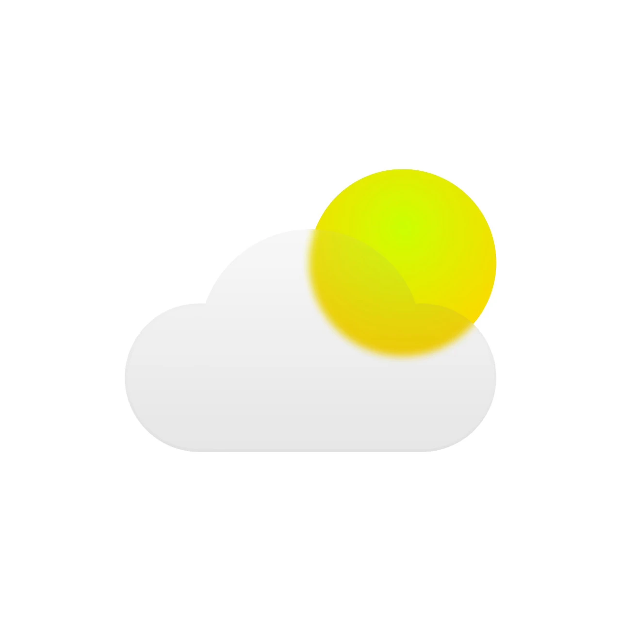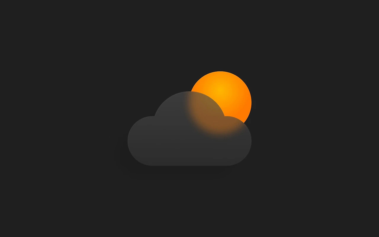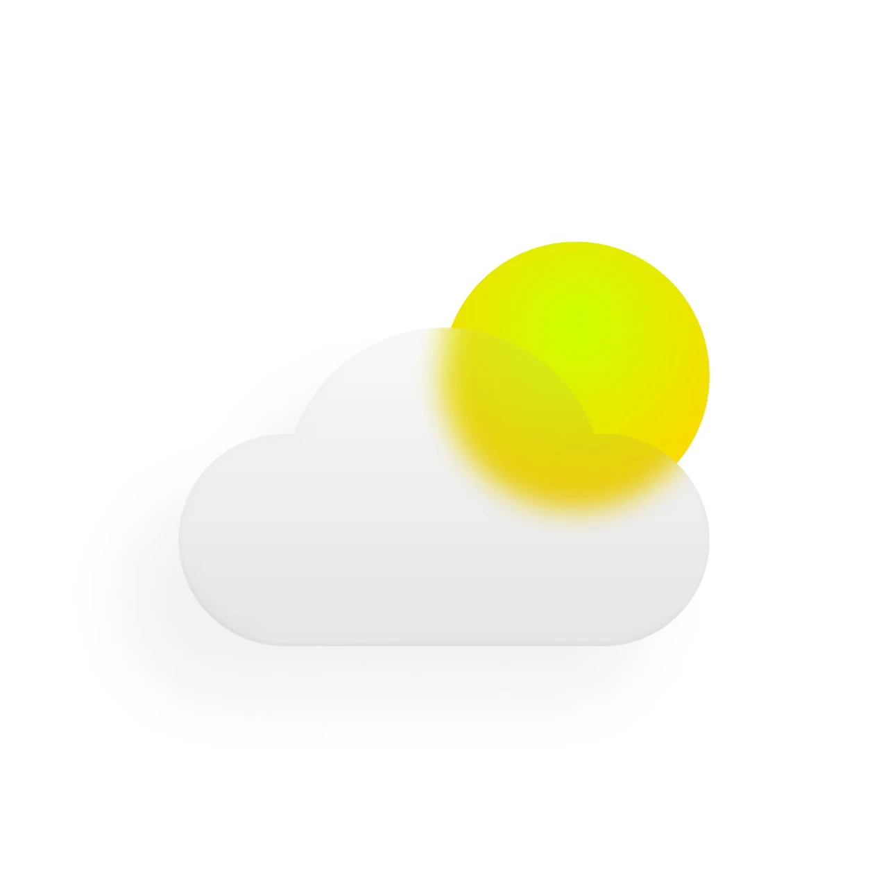 글래스모피즘의 완성도를 위해서는 약간의 리얼리티가 반영되어야 합니다. 구름과 해는 플랫 한 형태가 아닌 어느 정도 입체감을 지닌 형태입니다. 오브젝트의 앞에 다음과 같이 조명이 있다고 가정을 해보겠습니다. 오른쪽에서 보는 모습입니다.