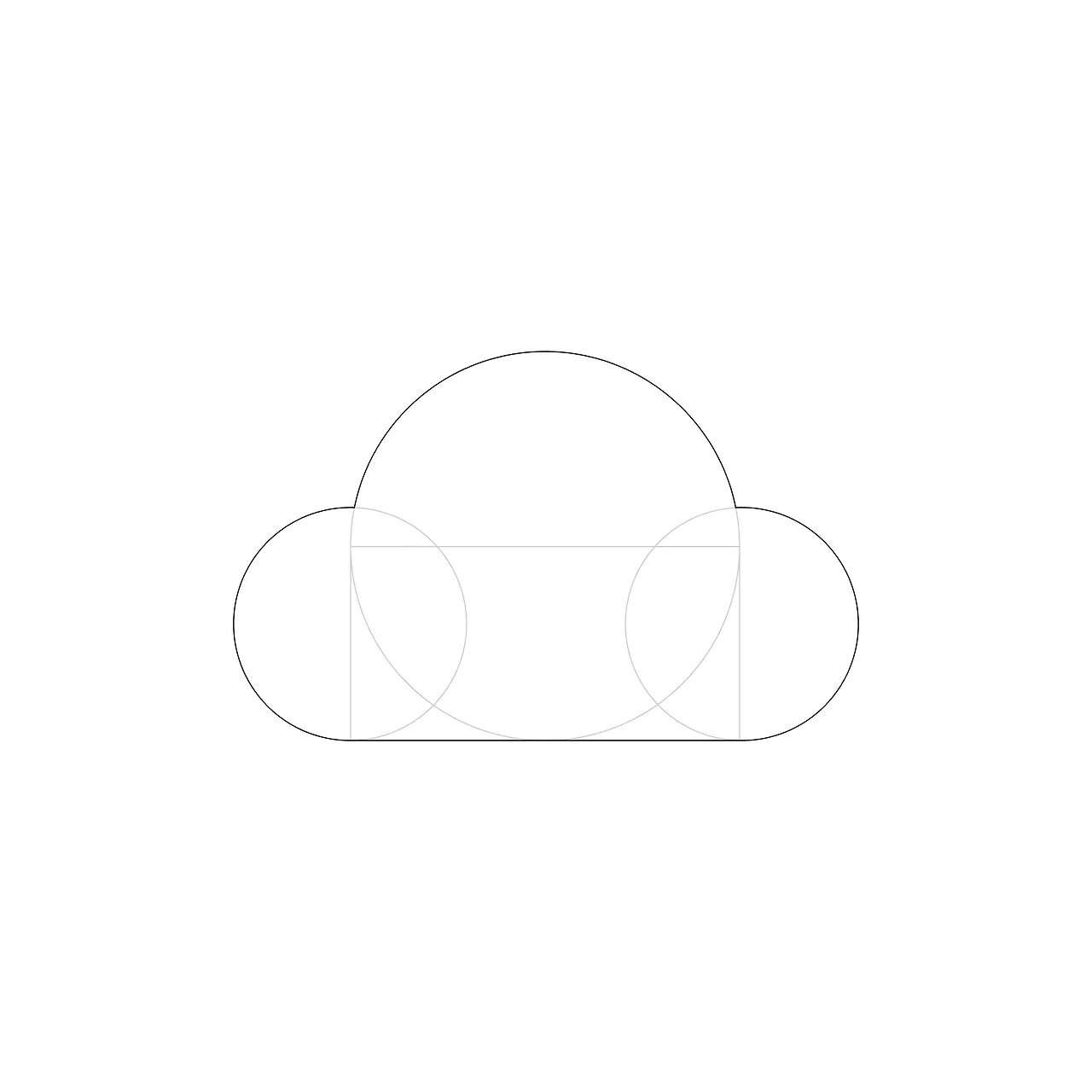 먼저 구름을 만들어 보겠습니다. 구름은 3개의 원과 하나의 사각형을 합치면 완성입니다. 먼저 구조는 아래와 같습니다.