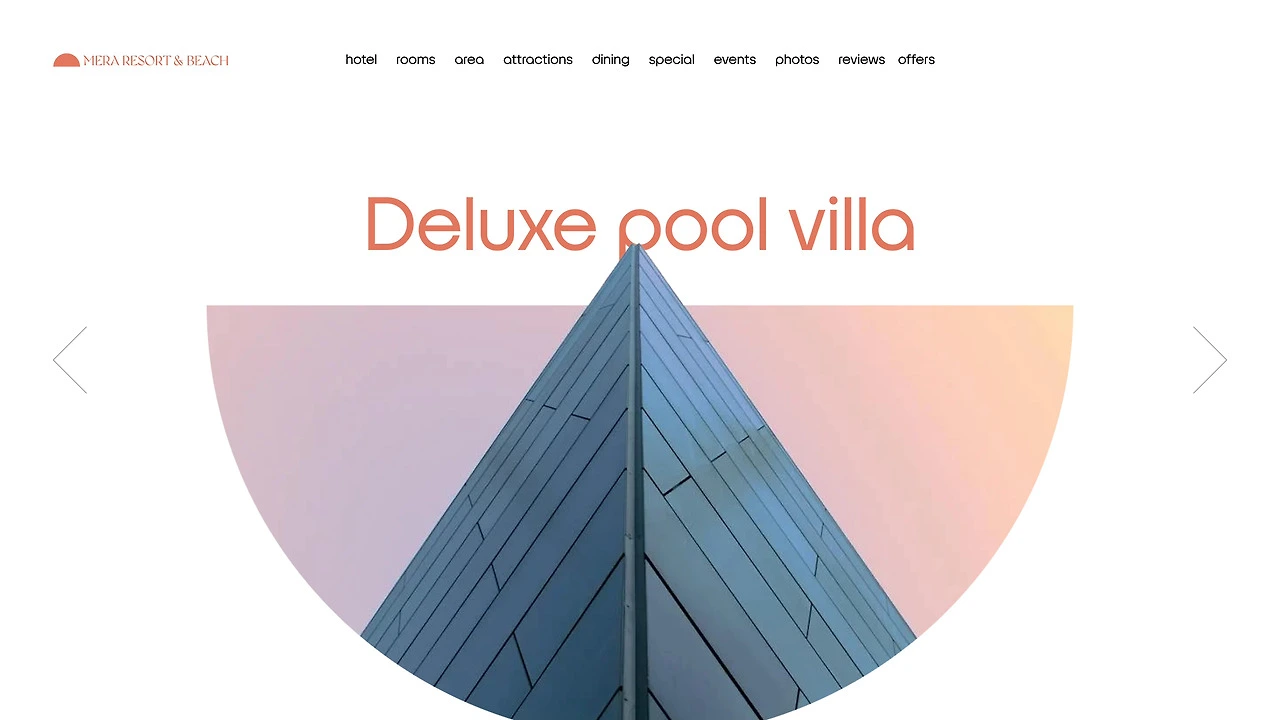 여기 테라스가 아름다운 호텔이 있습니다. 이 호텔은 일출을 볼 수 있는 바닷가에 위치하고 있으며, 고운 입자의 단단한 모래사장을 갖고 있습니다. 이러한 핵심 자산을 강조하여 호텔에 대한 브랜딩 디자인을 진행해 보도록 하겠습니다.