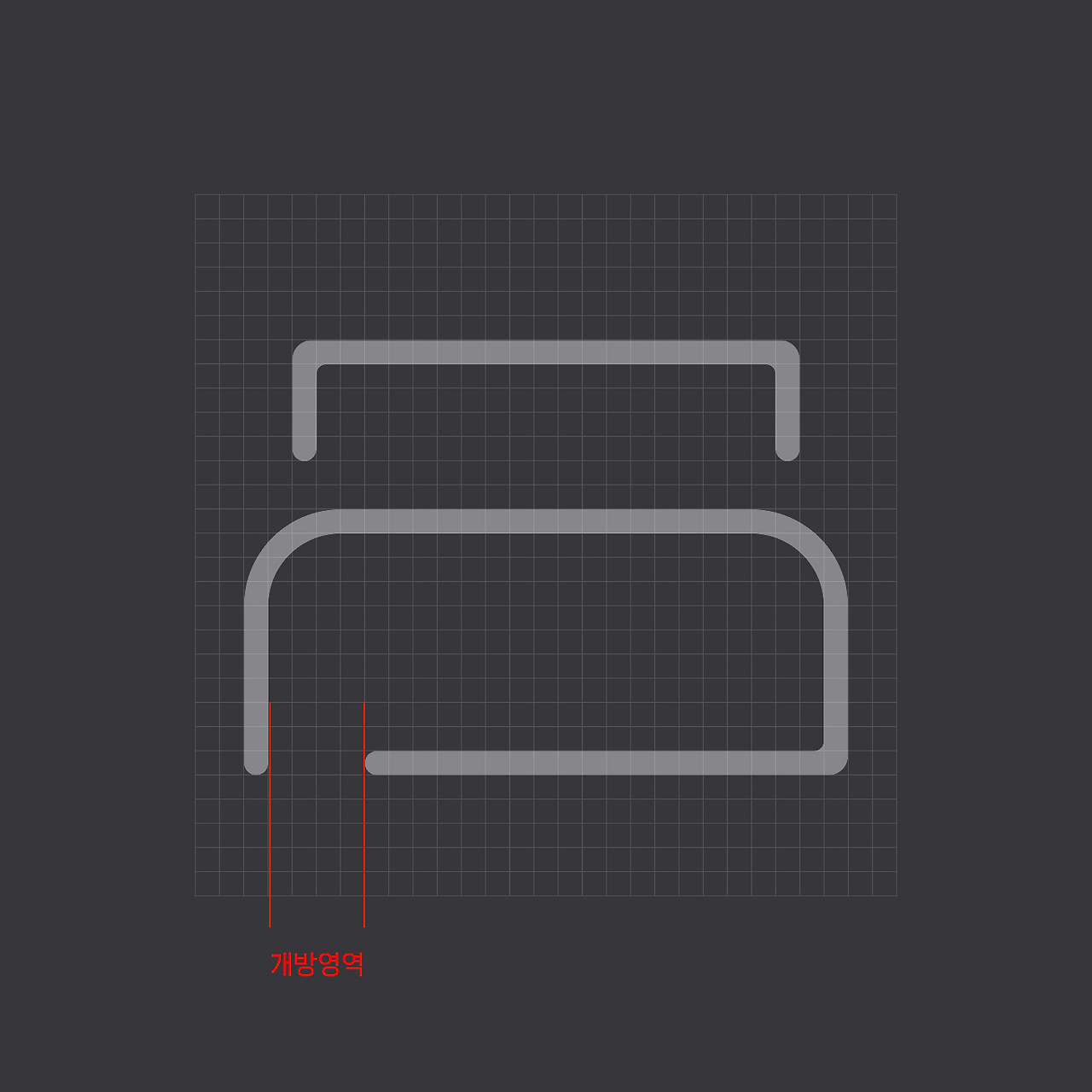 첫째, 도형을 둘러싼 라인은 이어지지 않고 끊어서 개방역영을 확보