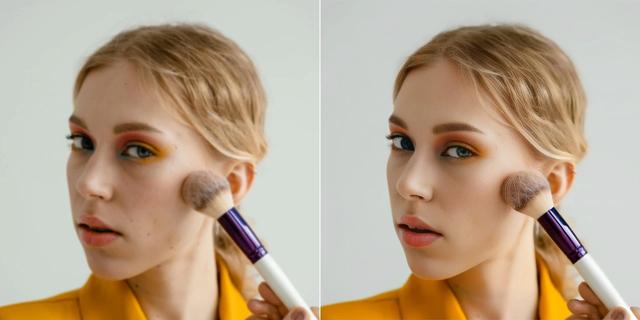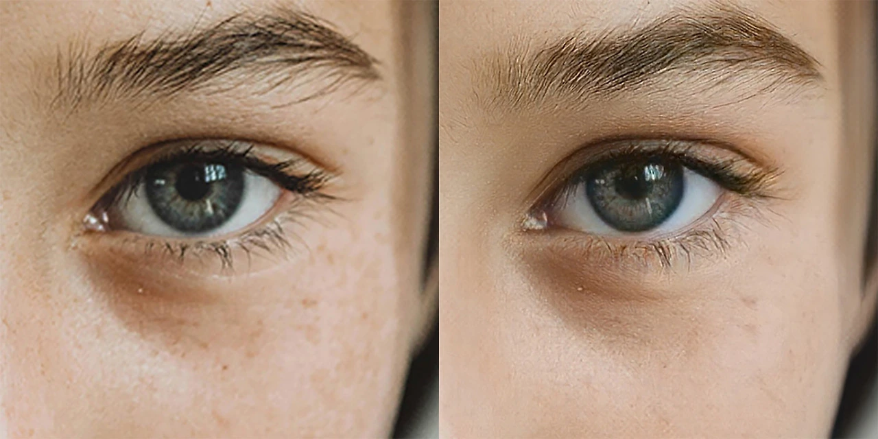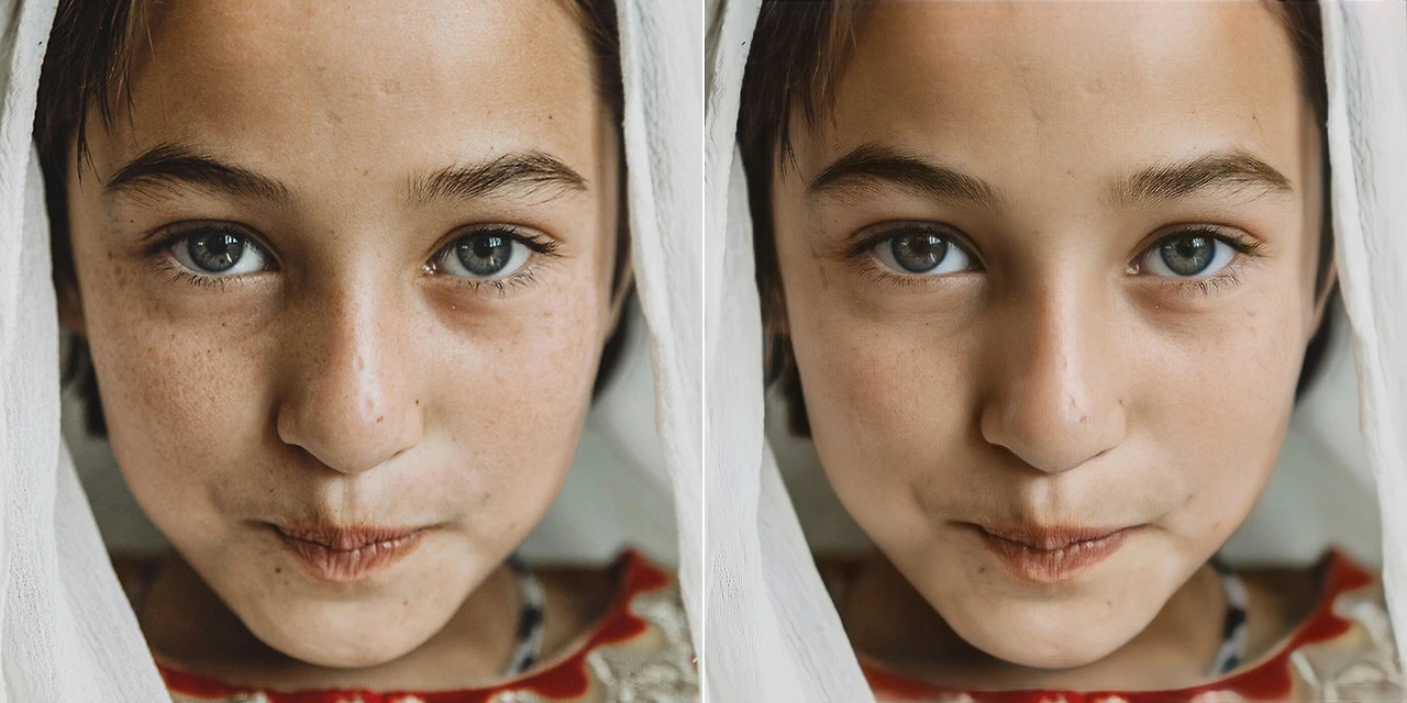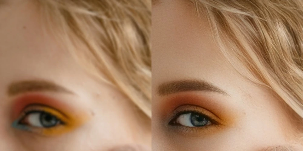 원본 이미지(좌), 화질 개선 이미지(우), 눈썹의 디테일을 눈여겨 봐 주세요.