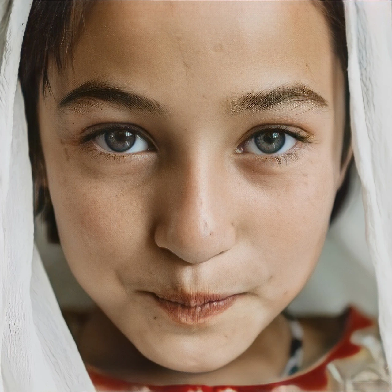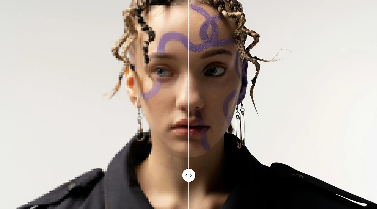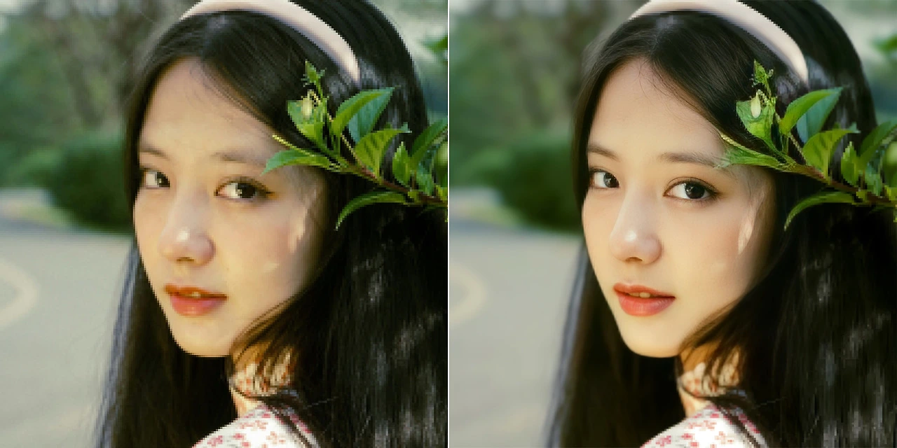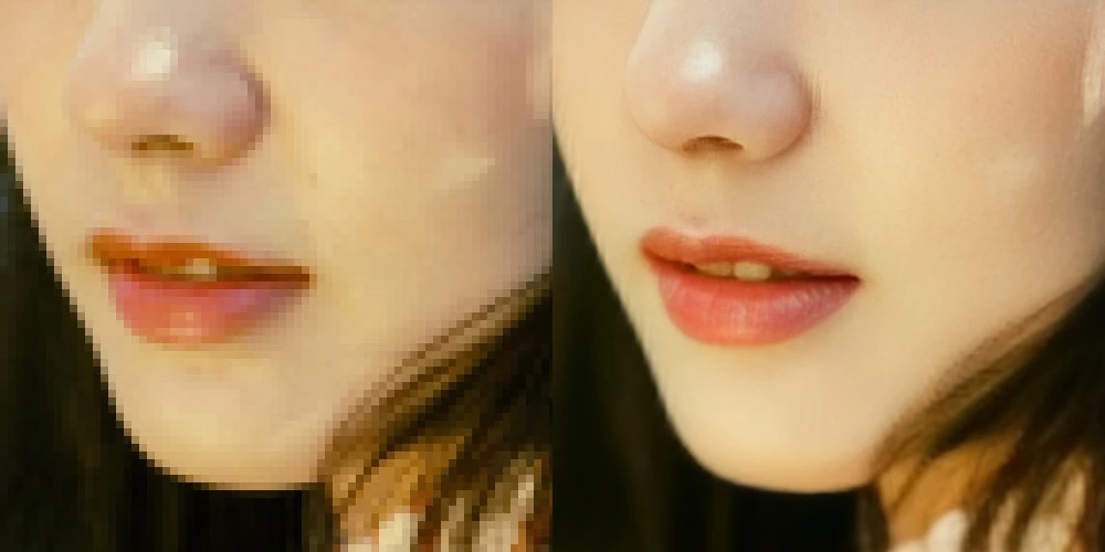 원본 이미지(좌), 화질 개선 이미지(우), 눈과 머리카락의 디테일을 눈여겨 봐 주세요.