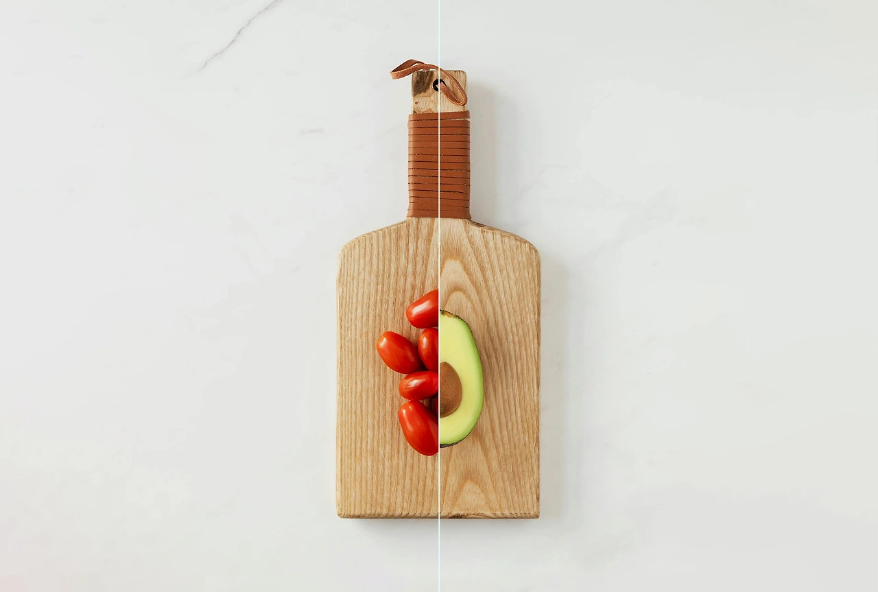 주방용품을 파는 쇼핑몰입니다. 나무 도마 위에 방울토마토가 놓여 있는데 이 토마토를 다른 재료로 교체하고 싶습니다. 재 촬영하지 않고 자연스럽게 다른 재료로 교체가 될까요?