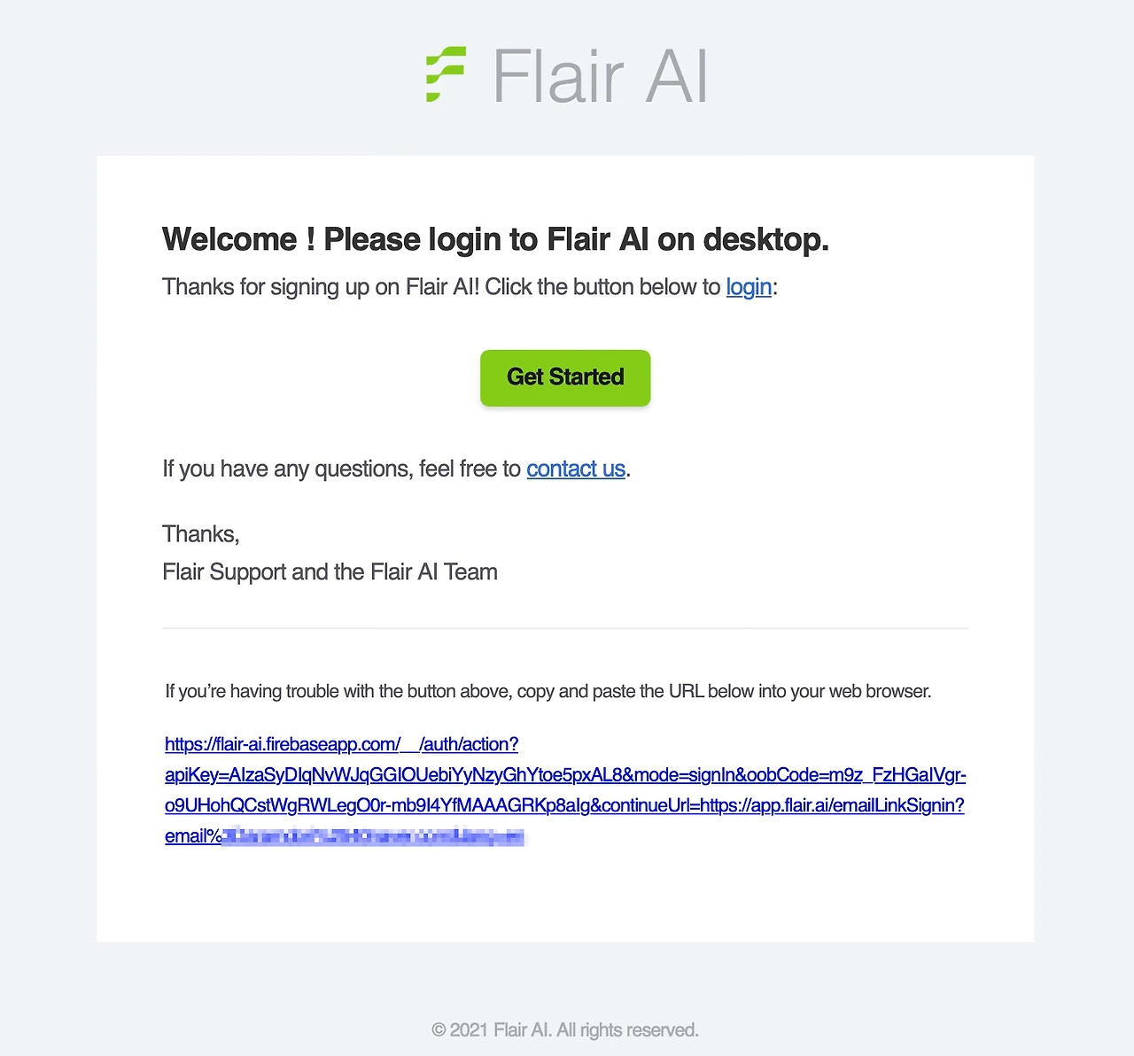 3. 어떠한 방법을 선택하여도 구글메일, 혹은 직접 입력한 이메일로 다음과 같은 메일이 발송됩니다. “Get Started”를 클릭하시면 회원가입 완료입니다. 이후 해당 계정으로 로그인하면 됩니다.