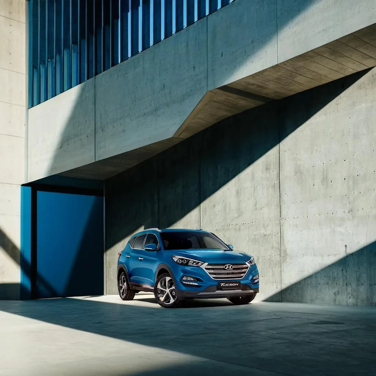 1. 모던한 콘크리트 구조물에 자동차가 담겨 있는 이미지를 만들어 볼게요. 먼저 업로드 이미지입니다.