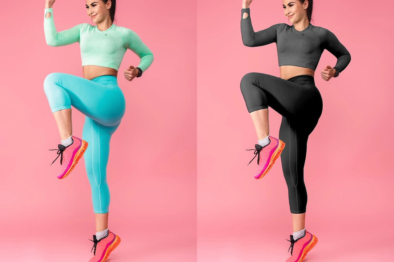1. 먼저 바꾸기 전의 원본 이미지입니다. 흰색 탑과 하늘색 레깅스를 착용하였습니다.