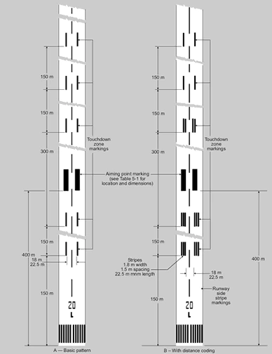 착륙할 때 조종사가 이 발자국 모양의 표식을 조준하여 활주로에 접근하는데, 처음부터 끝까지 조준점을 유지하면 실제로는 조준점에 착지하지 못하고 그전에 미리 바퀴가 닿아버리고 만다. 뿐만 아니라 강하율을 줄이지 못하여 하드랜딩을 하게 된다. 그래서 포물선을 그리며 비행기가 부드럽게 활주로에 내리기 위해 "플레어"란 조작을 하는 것이다.