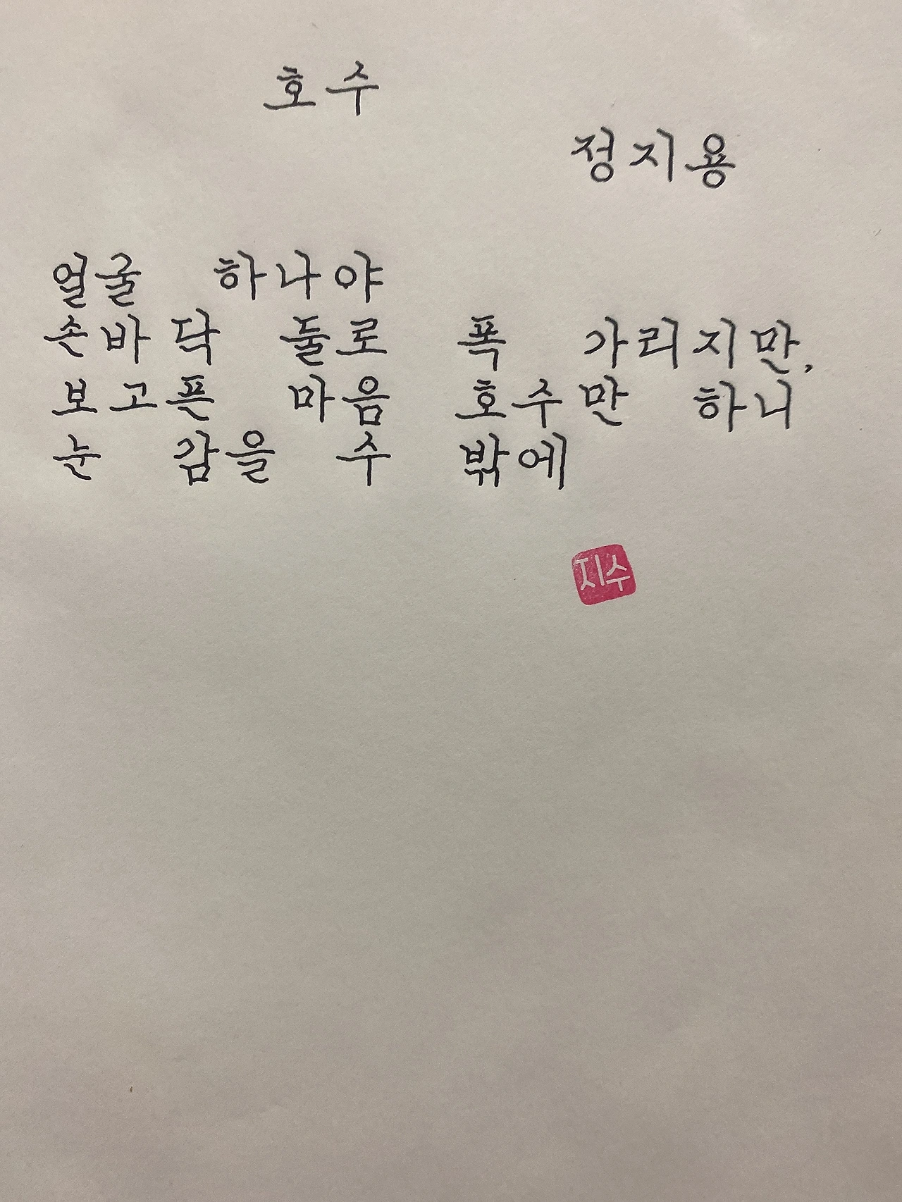평범한 직장인. 사내 동호회를 통해 매일 한편 손으로 시 읽기를 시작한 이후로, 매일 시 한편을 필사 합니다. 필사한 시가 저작권에 문제가 된다면 말씀해주세요.