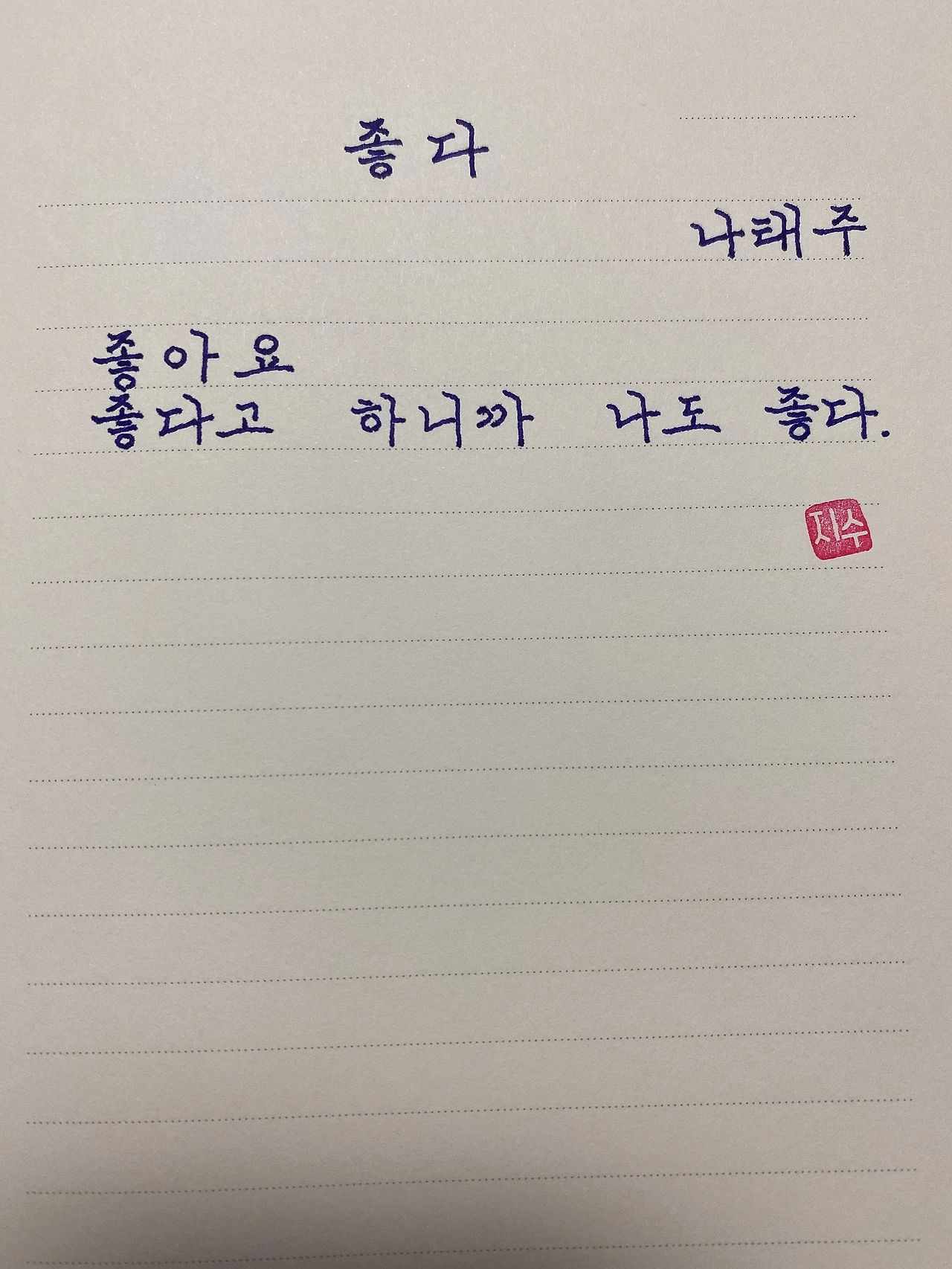 평범한 직장인. 사내 동호회를 통해 매일 한편 손으로 시 읽기를 시작한 이후로, 매일 시 한편을 필사 합니다. 필사한 시가 저작권에 문제가 된다면 말씀해주세요.
