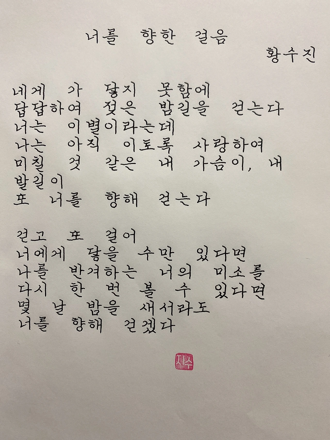 평범한 직장인. 사내 동호회를 통해 매일 한편 손으로 시 읽기를 시작한 이후로, 매일 시 한편을 필사 합니다. 필사한 시가 저작권에 문제가 된다면 말씀해주세요.