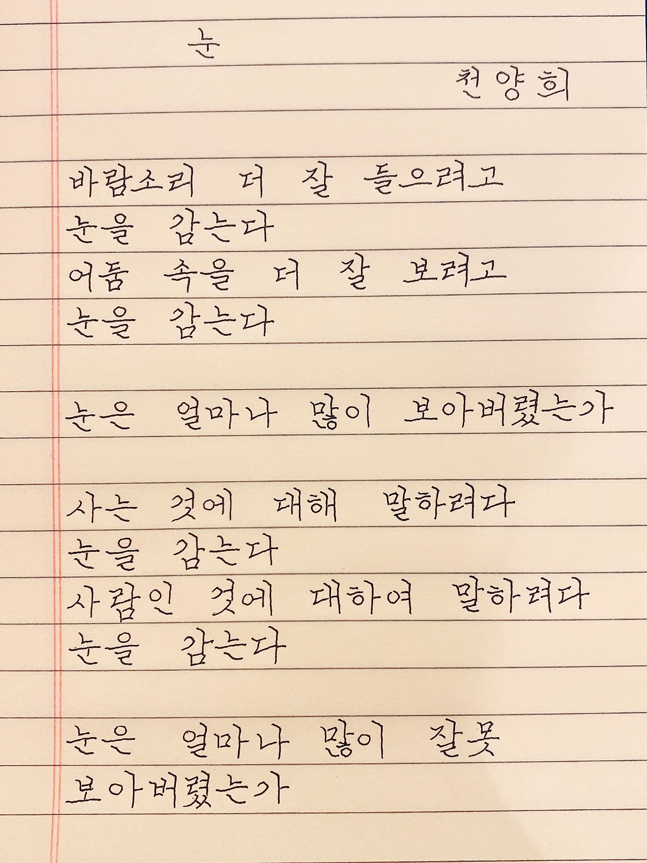 평범한 직장인. 사내 동호회를 통해 매일 한편 손으로 시 읽기를 시작한 이후로, 매일 시 한편을 필사 합니다. 필사한 시가 저작권에 문제가 된다면 말씀해주세요.