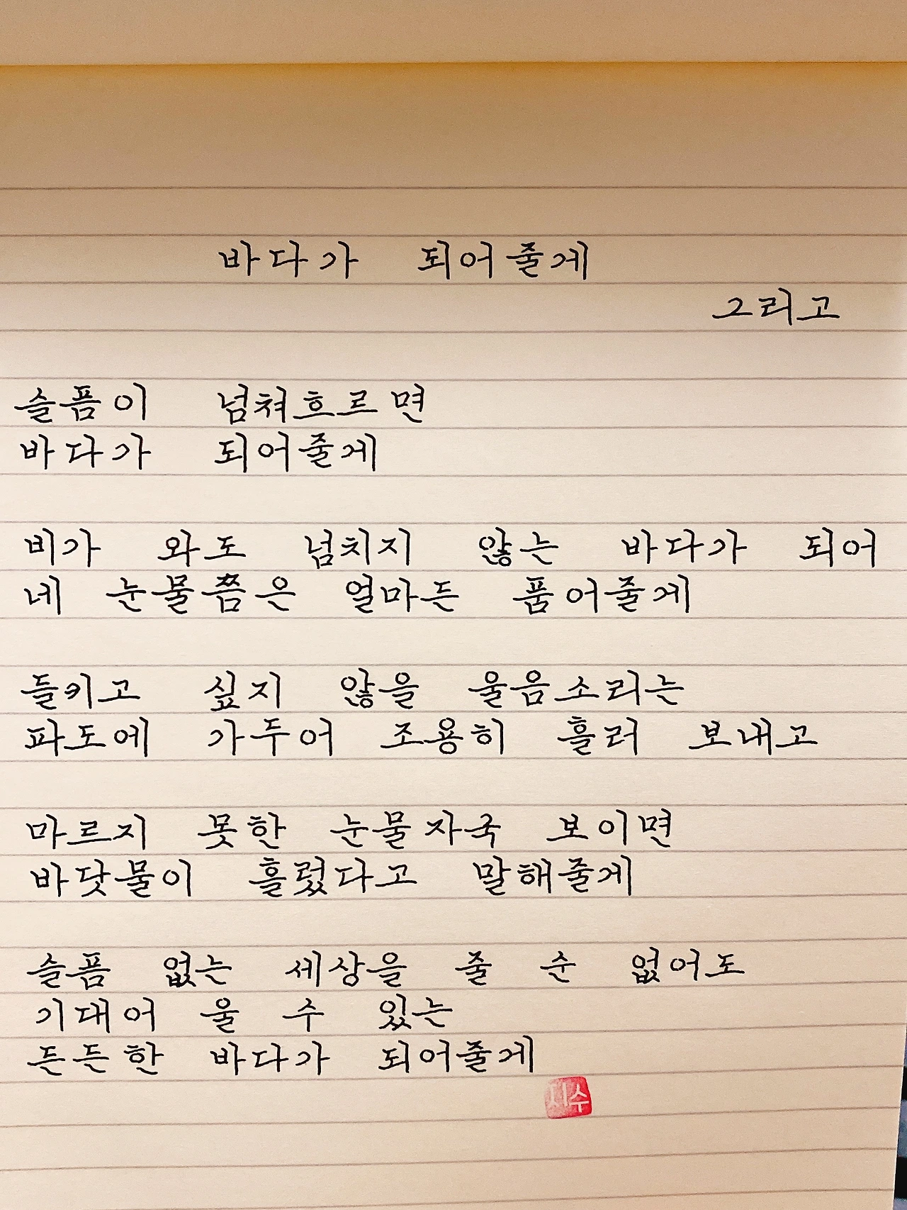 평범한 직장인. 사내 동호회를 통해 매일 한편 손으로 시 읽기를 시작한 이후로, 매일 시 한편을 필사 합니다. 필사한 시가 저작권에 문제가 된다면 말씀해주세요.