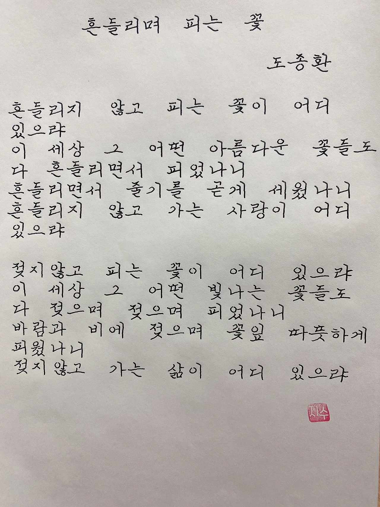 흔들리지 않고 피는 꽃이 어디 있으랴
