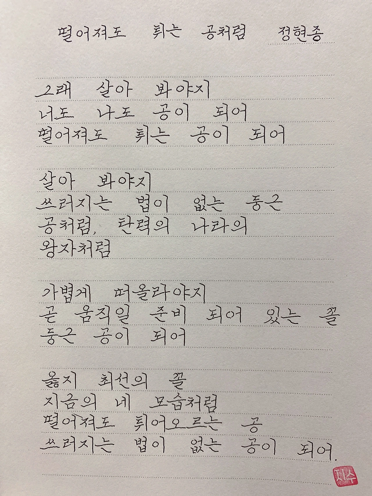 [220207] 떨어져도 튀는 공처럼 /정현종