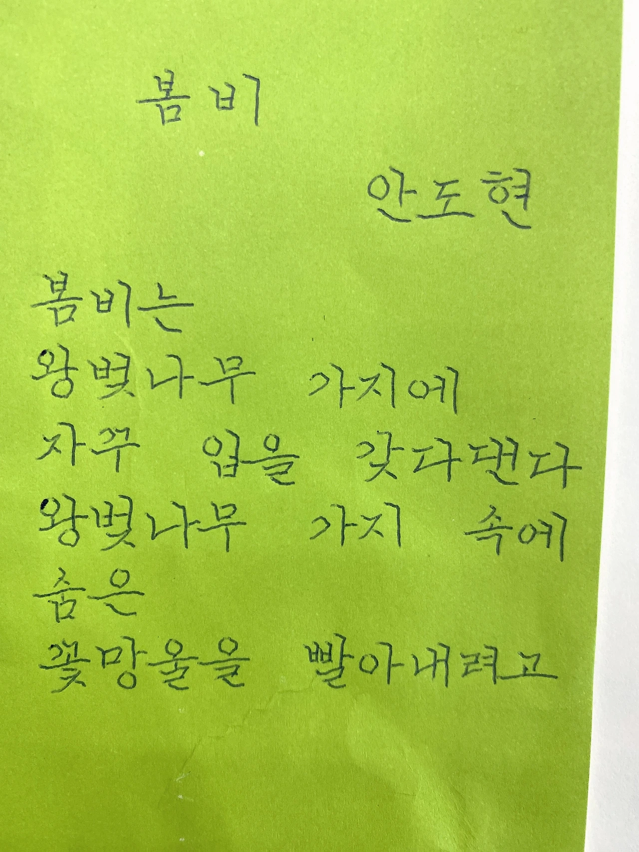 평범한 직장인. 사내 동호회를 통해 매일 한편 손으로 시 읽기를 시작한 이후로, 매일 시 한편을 필사 합니다. 필사한 시가 저작권에 문제가 된다면 말씀해주세요.