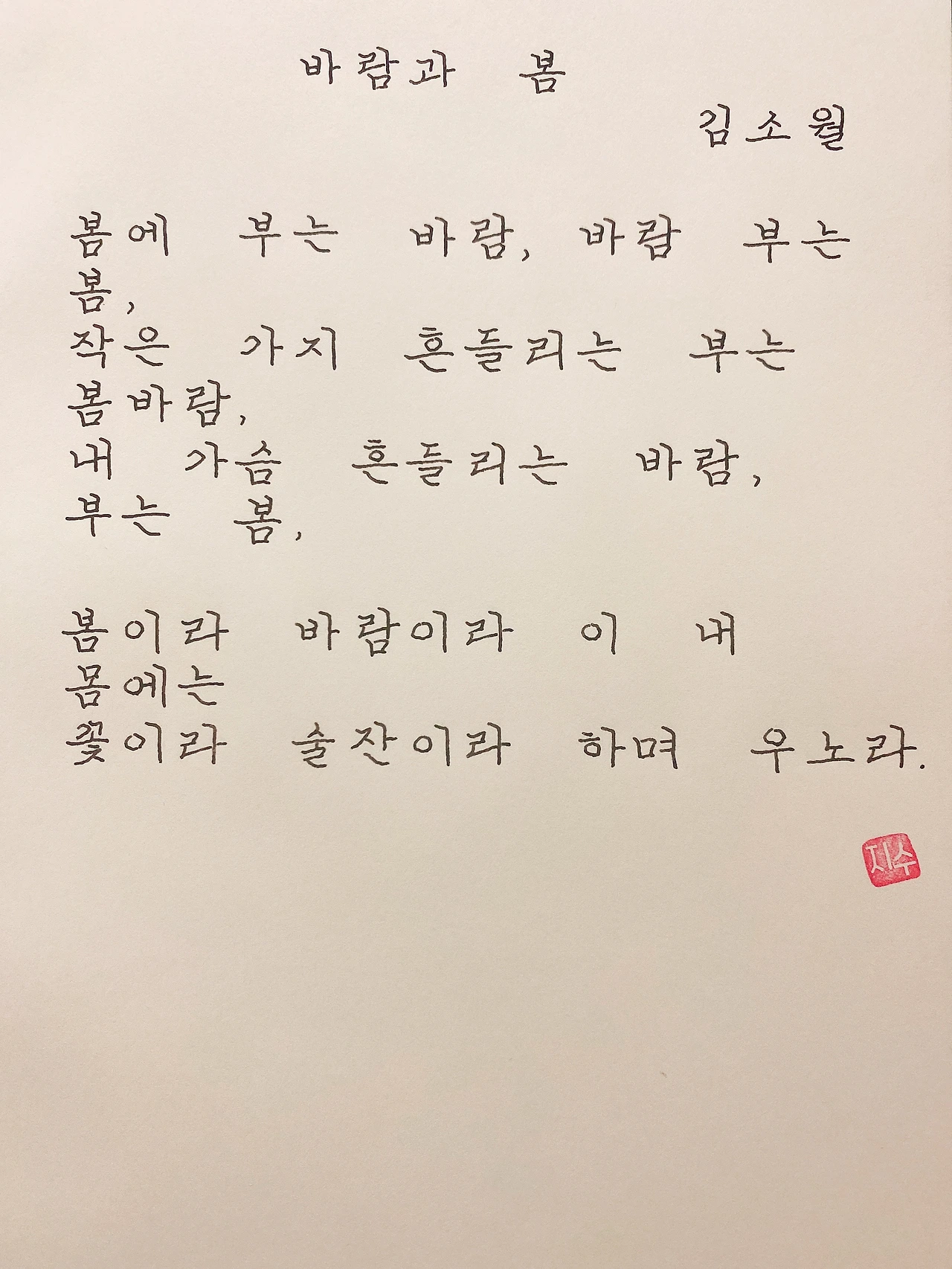 평범한 직장인. 사내 동호회를 통해 매일 한편 손으로 시 읽기를 시작한 이후로, 매일 시 한편을 필사 합니다. 필사한 시가 저작권에 문제가 된다면 말씀해주세요.