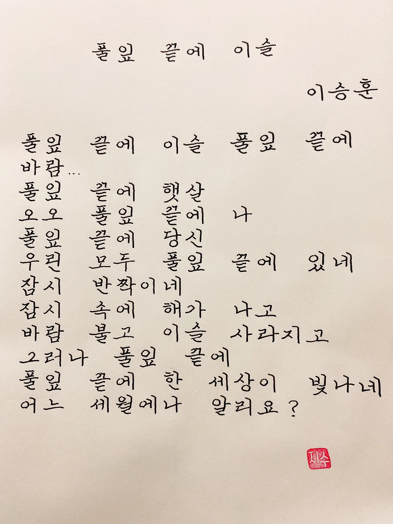 [220719] 풀잎 끝에 이슬 / 이승훈