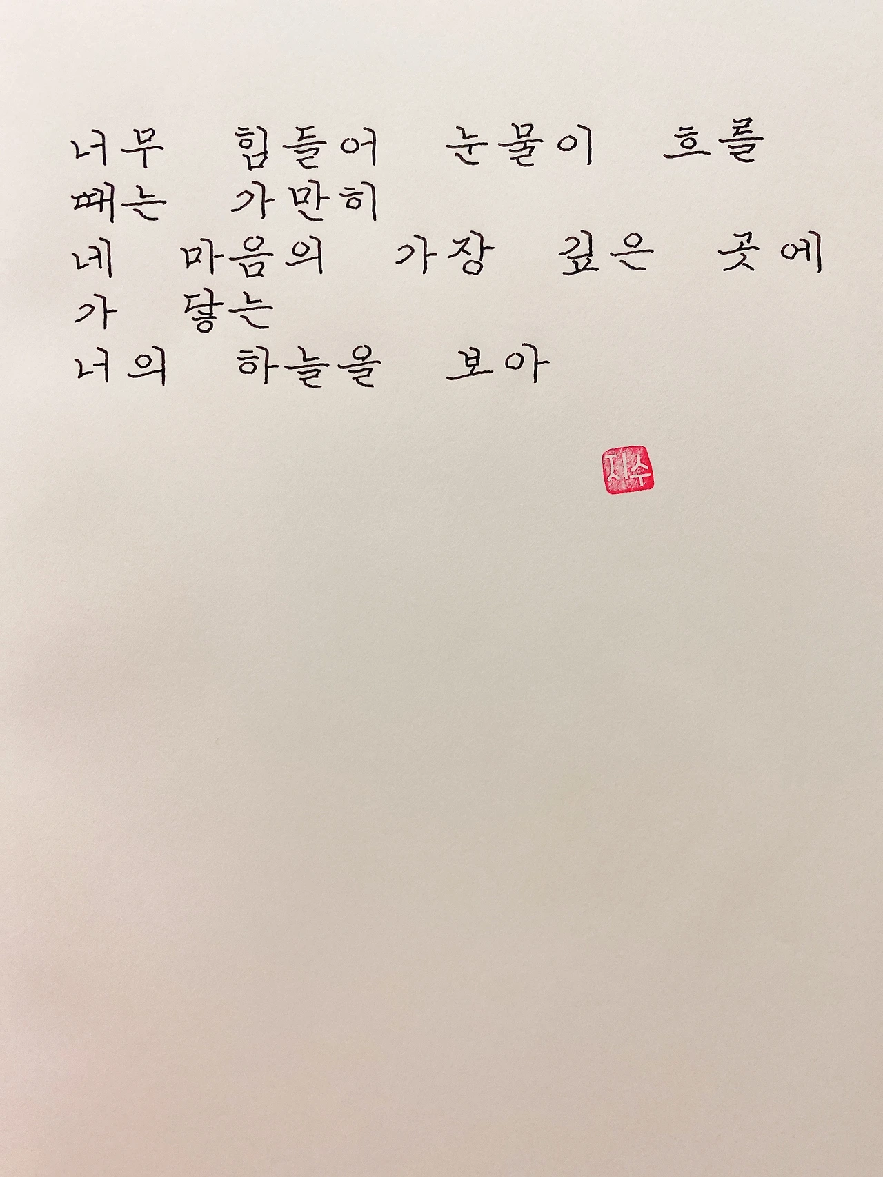 평범한 직장인. 사내 동호회를 통해 매일 한편 손으로 시 읽기를 시작한 이후로, 매일 시 한편을 필사 합니다. 필사한 시가 저작권에 문제가 된다면 말씀해주세요.