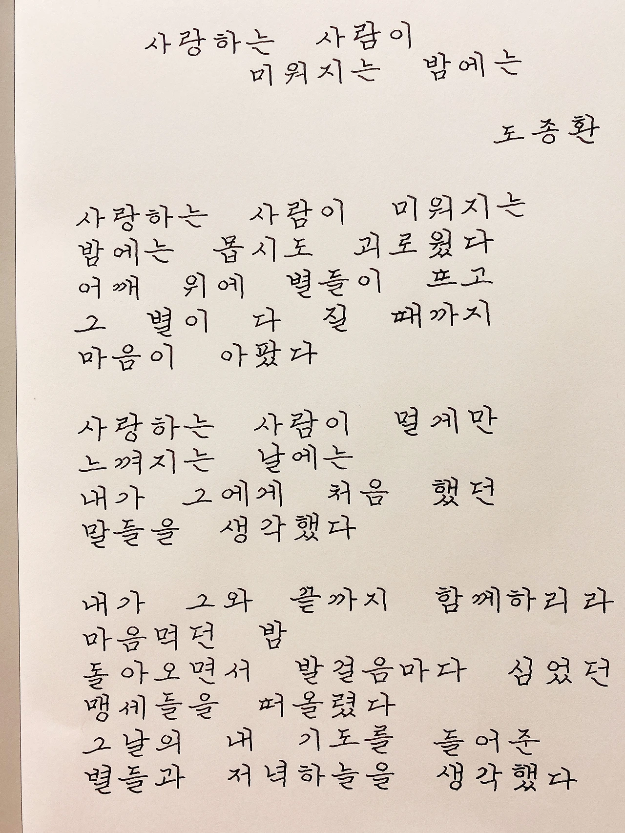 사랑하는 사람이 미워지는 밤에는 / 도종환