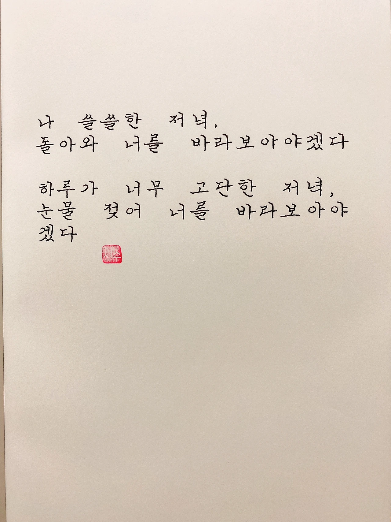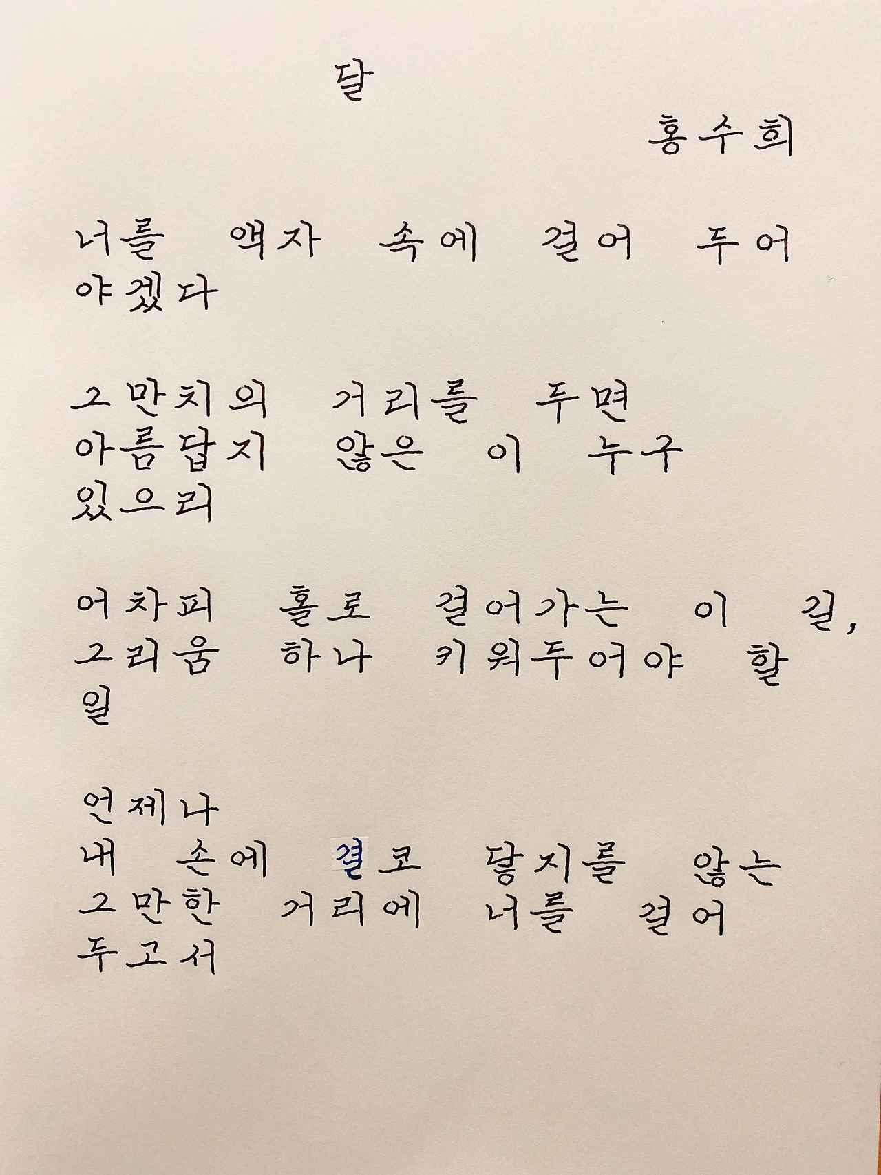 평범한 직장인. 사내 동호회를 통해 매일 한편 손으로 시 읽기를 시작한 이후로, 매일 시 한편을 필사 합니다. 필사한 시가 저작권에 문제가 된다면 말씀해주세요.