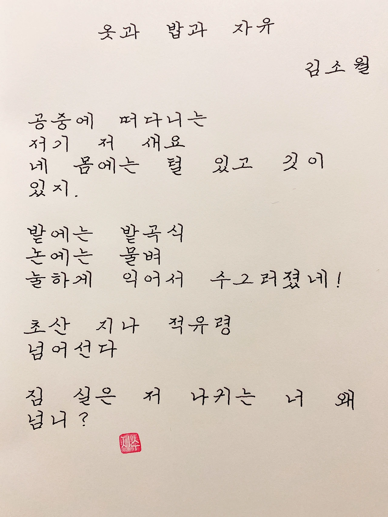평범한 직장인. 사내 동호회를 통해 매일 한편 손으로 시 읽기를 시작한 이후로, 매일 시 한편을 필사 합니다. 필사한 시가 저작권에 문제가 된다면 말씀해주세요.