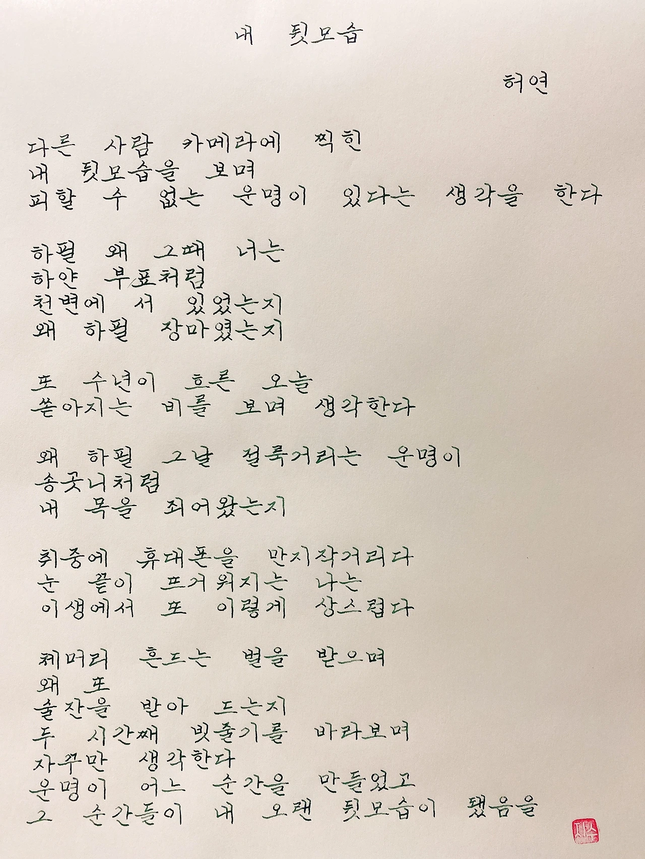 그 순간들이 내 오랜 뒷모습이 됐음을