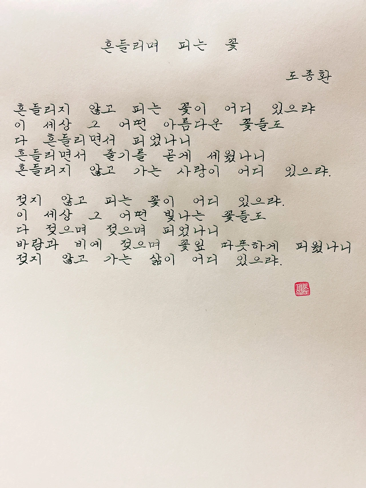 흔들리지 않고 피는 꽃이 어디 있으랴.
